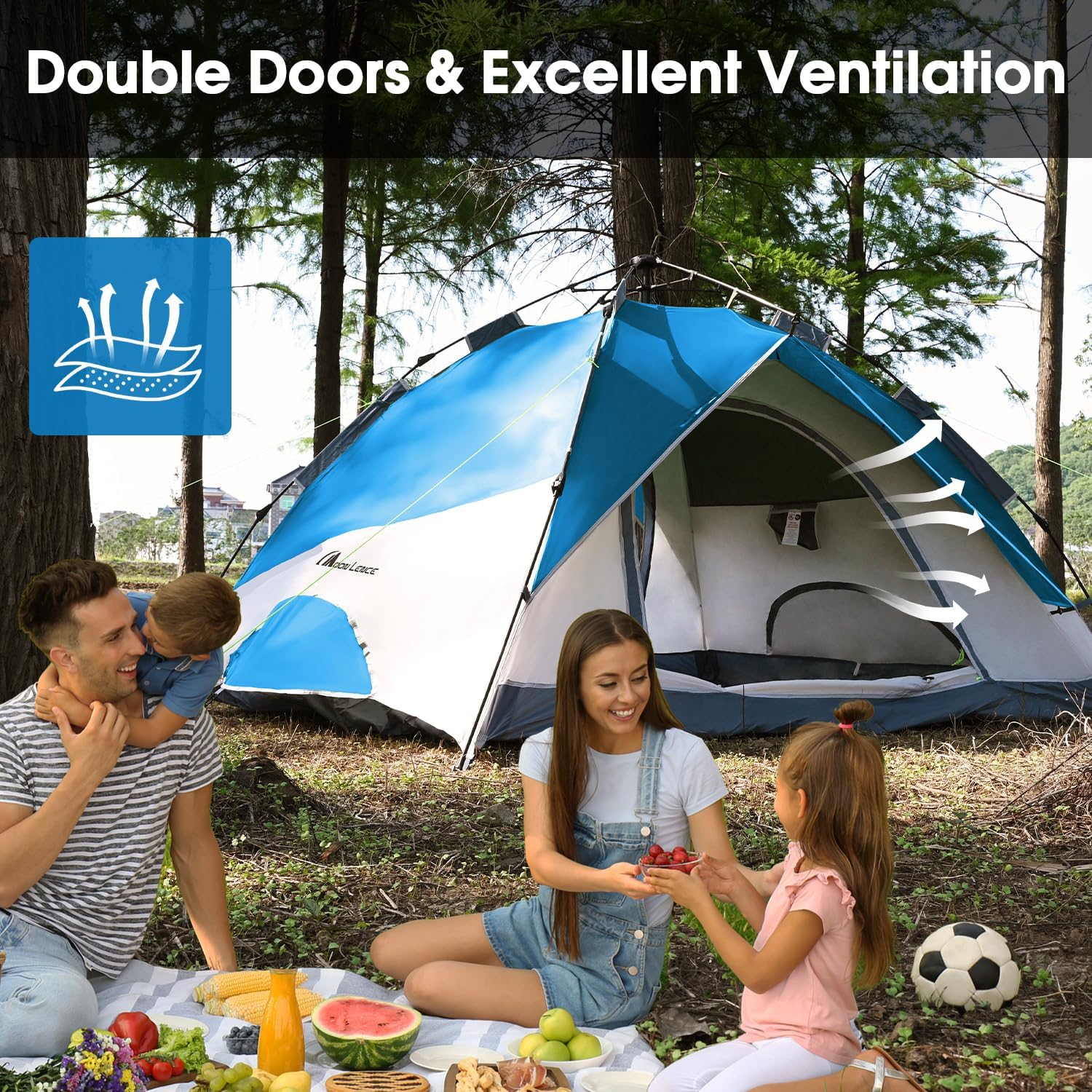 MOON LENCE Instant Pop Up Tent for 3-4 Person - Automatic Portable, Windproof for Camping, Hiking, Mountaineering