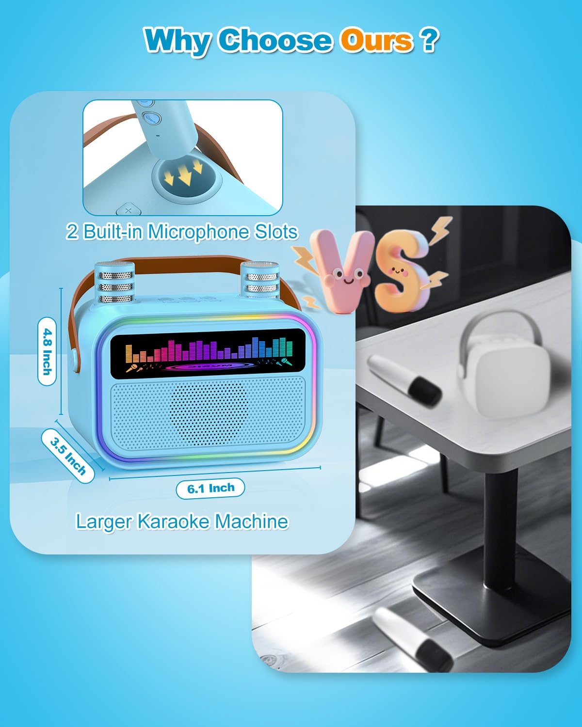 Karaoke Machine for Kids Adults, Birthday Gifts Toys for Girls Boys Age 3-12+,Mini Portable Bluetooth Singing Speaker with 2 Wireless Microphones & LED Lights (Blue)