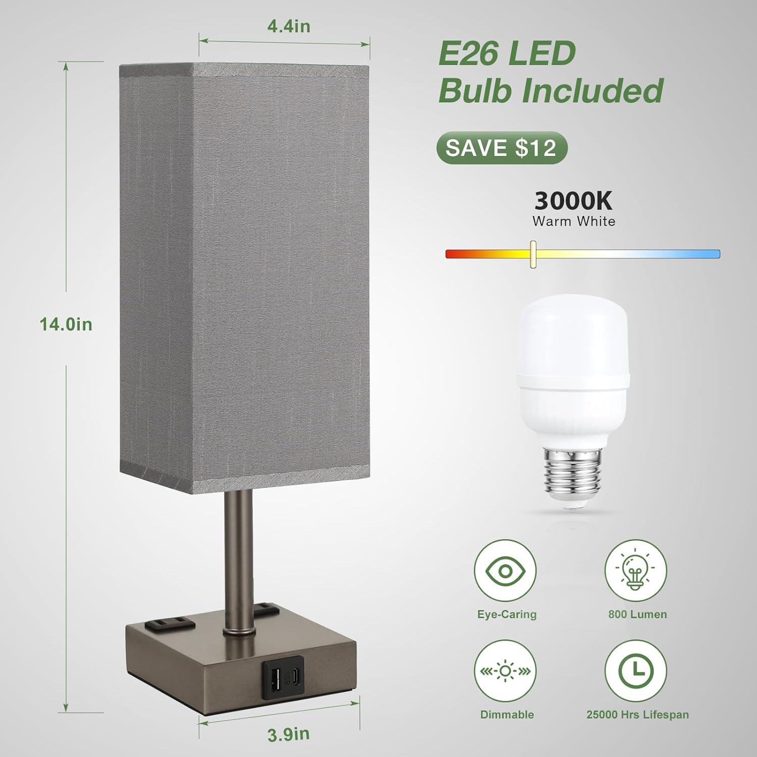- 2 Energy Efficient LED Bulbs Included - This nightstand lamps set of 2 packed with dual dimmable E26 LED bulbs. NO FLICKER, NO DAZZLE. Equiped with the stylish linen fabric lampshade, these two 3000K warm bulbs can help bring a warmer ambience to our decor lamp which is good for eye-caring.