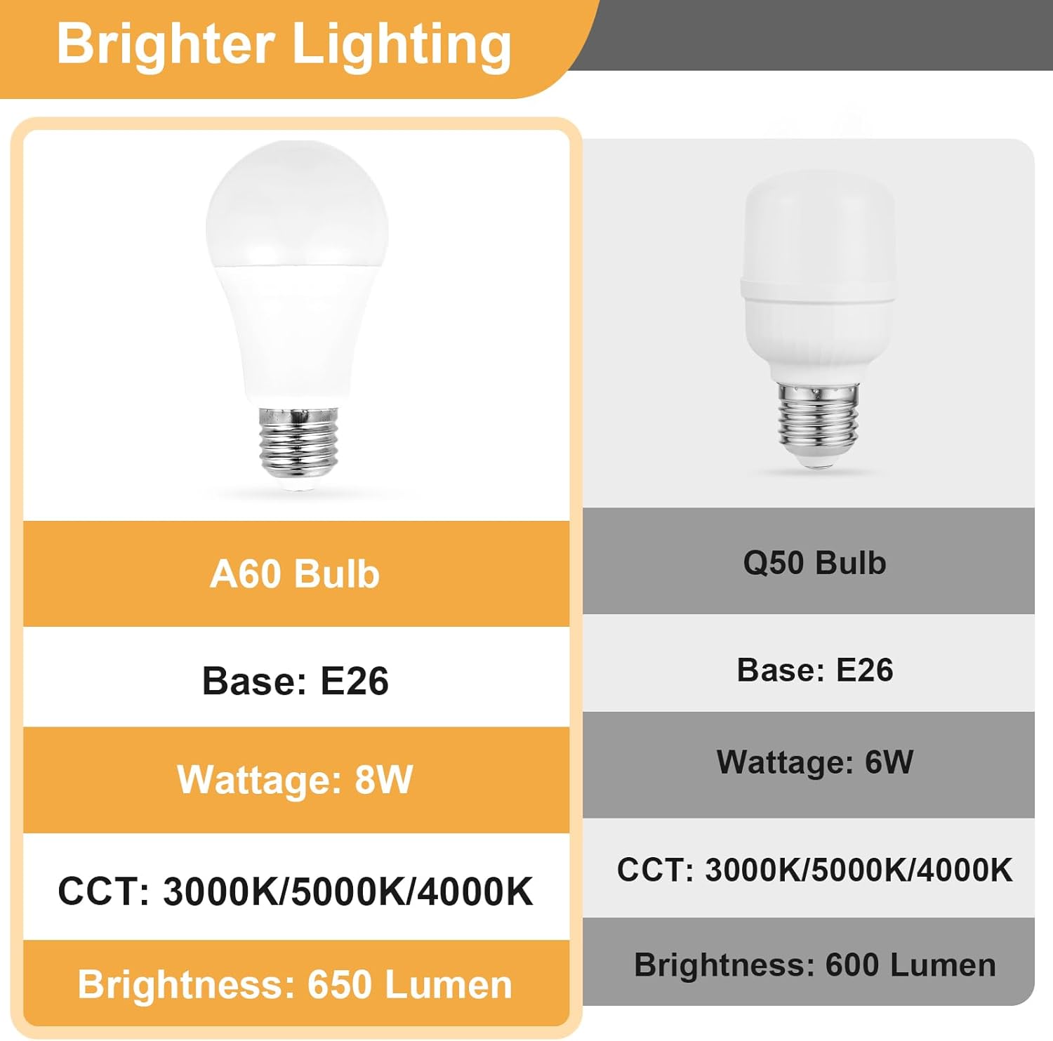 - Two Brighter Dimmable LED Bulbs: The night light comes with two A60 E26 base 8W tri-colour temperature LED bulbs to provide a wider range of illumination. These Edison bulbs emit a steady 3000K/5000K/4000K light and provide excellent mitigation of light radiation and eye protection