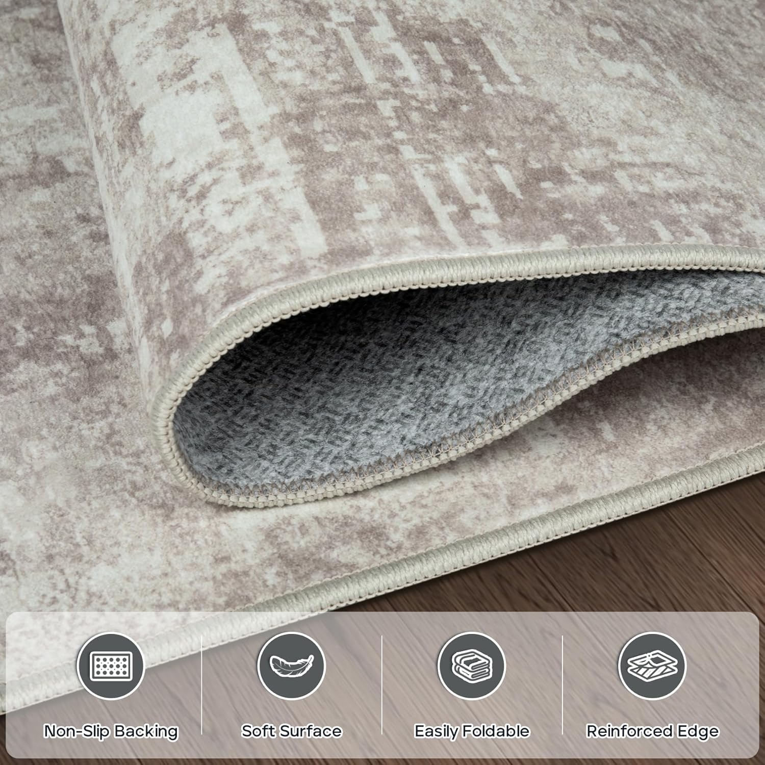 5x7 Area Rugs for Living Room Rug Washable: Modern Rug for Dining Room Bedroom Carpet Non Slip Low Pile 5 by 7 Indoor Abstract Nursery Home Office Brown Grey