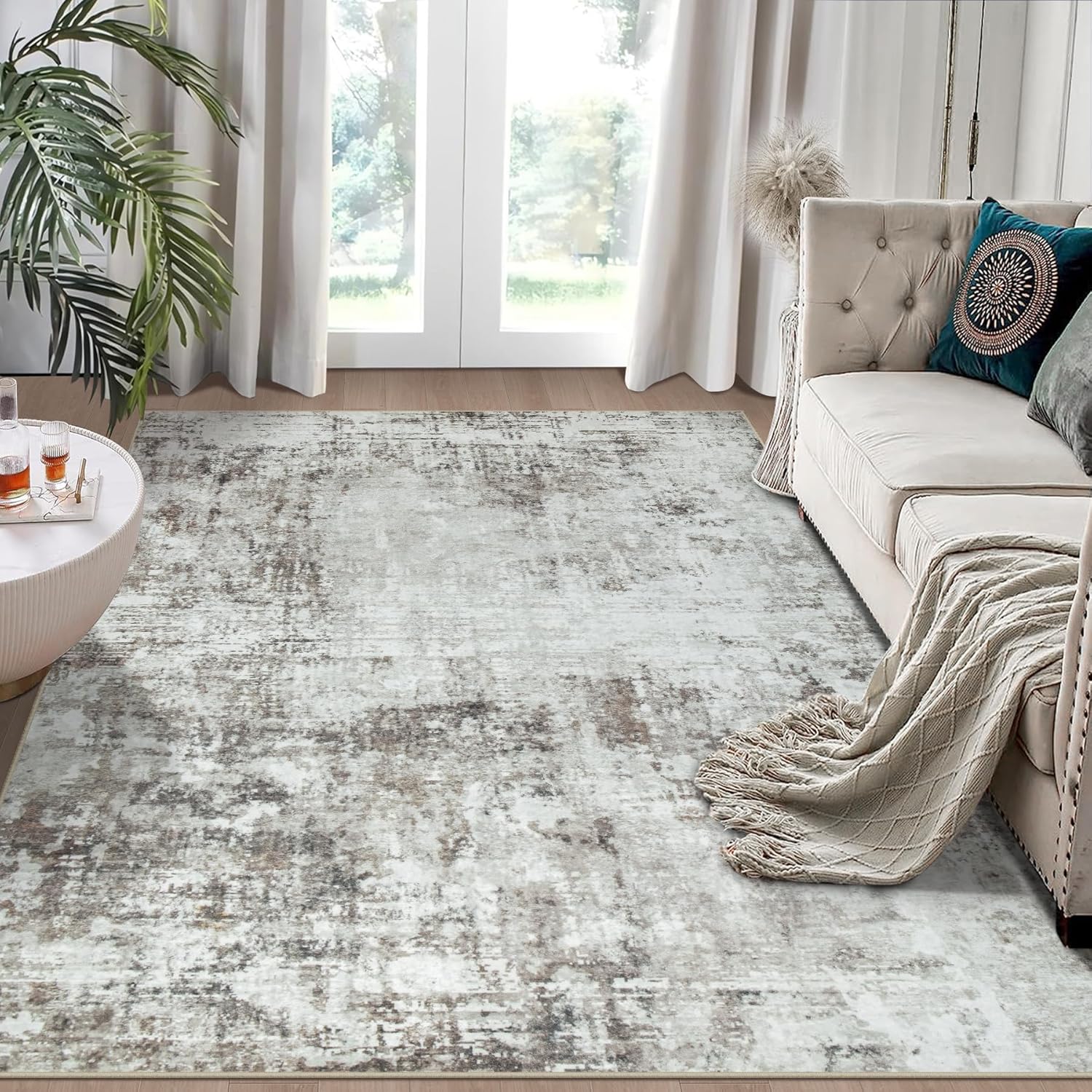 6x9 Area Rugs for Living Room Rug Washable: Modern Rug for Dining Room Bedroom Carpet Non Slip Low Pile 6 by 9 Indoor Abstract Nursery Home Office Brown Grey