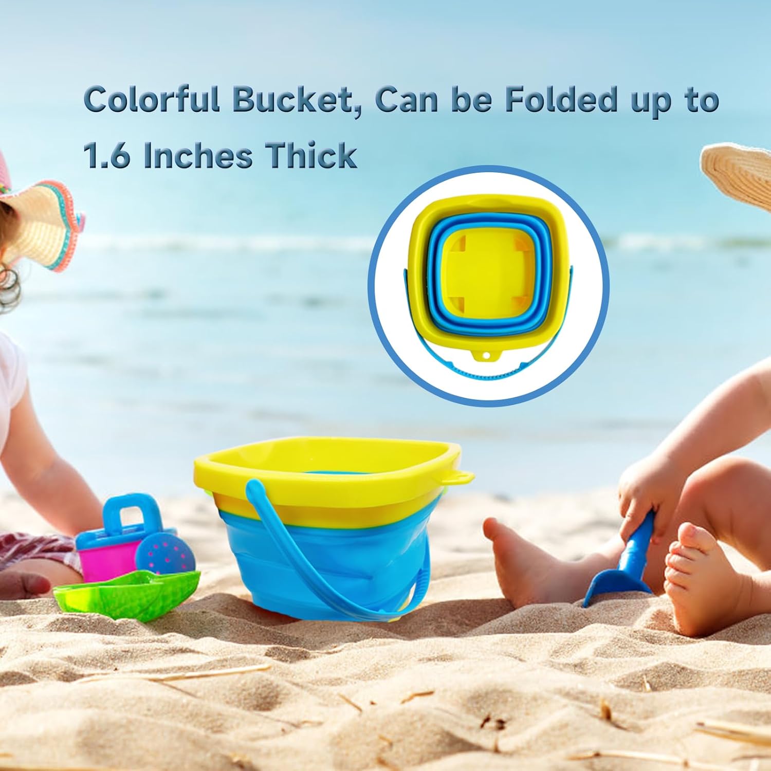 - Foldable Sand Bucket: The bucket can be foldable to a thickness of 1.6 inches, portable and lightweight, made of silicone and high-quality plastic, small and cute, not for large fish