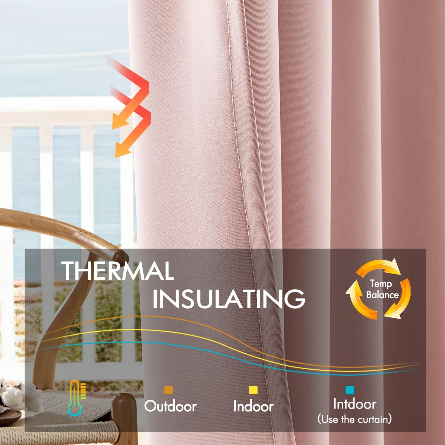 ANRODUO Light Pink Blackout Curtains for Girls Bedroom Living Room 84 Inches Long 2 Panels, Back Tab Rod Pocket Pinch Pleated Thermal Insulated Room Darkening Curtains, 52 x 84 Inch