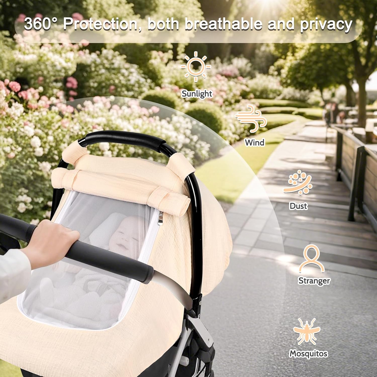 - 3 Versatile Modes for Every Need: Switch effortlessly between mesh window mode (UV protection & visibility), fully enclosed mode (windproof & private), and open-air mode (max breathable)–a must-have baby car seat cover for travel gear
