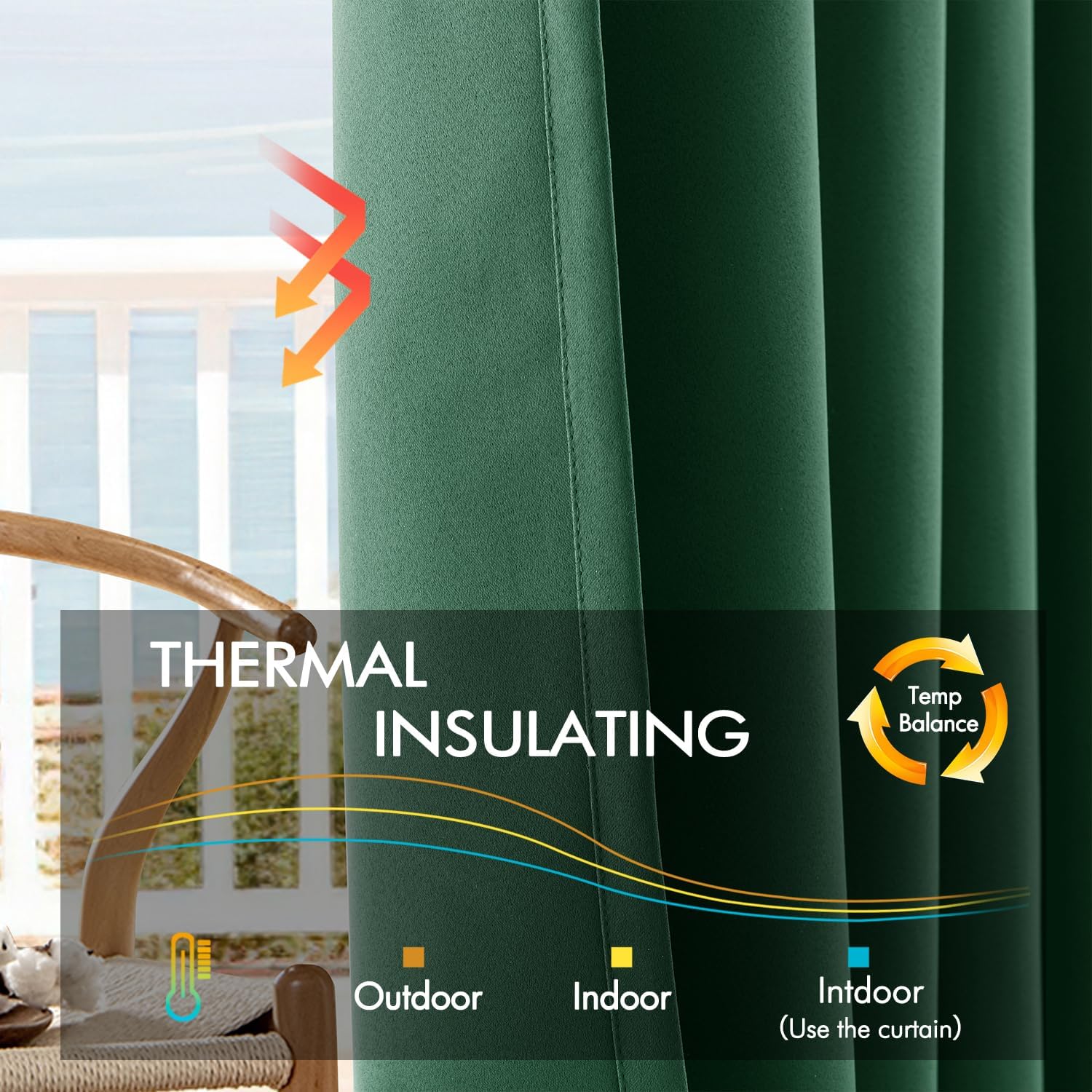 ANRODUO Back Tab Blackout Curtains for Bedroom Living Room, Rod Pocket Pinch Pleated Thermal Insulated Room Darkening Curtains 90 Inches Long 2 Panels, Hunter Green, 42 x 90 Inch