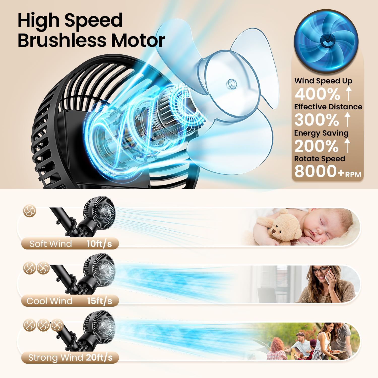 - 【3-Speed Cooling with Long Runtime】This rechargeable stroller fan delivers 3 quiet speeds - gentle for infants, medium for indoor use, and strong for outdoors. The upgraded motor ensures quiet operation and extended runtime, keeping you comfortably cool all night even on the highest speed setting.