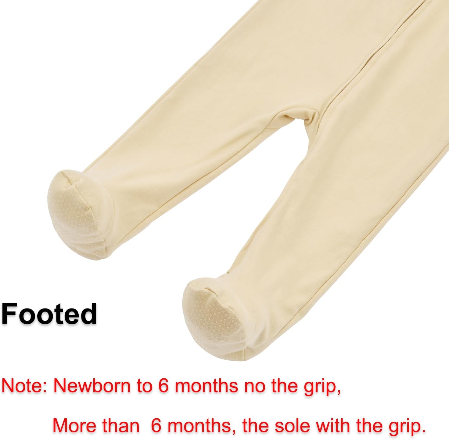 - Non-Slip Grips: These baby footed pjs size 6-12m and 12-18m have non-slip grips on the soles, providing safety for crawling or early walkers.(Note: Size Newborn to 6 months without the grips)