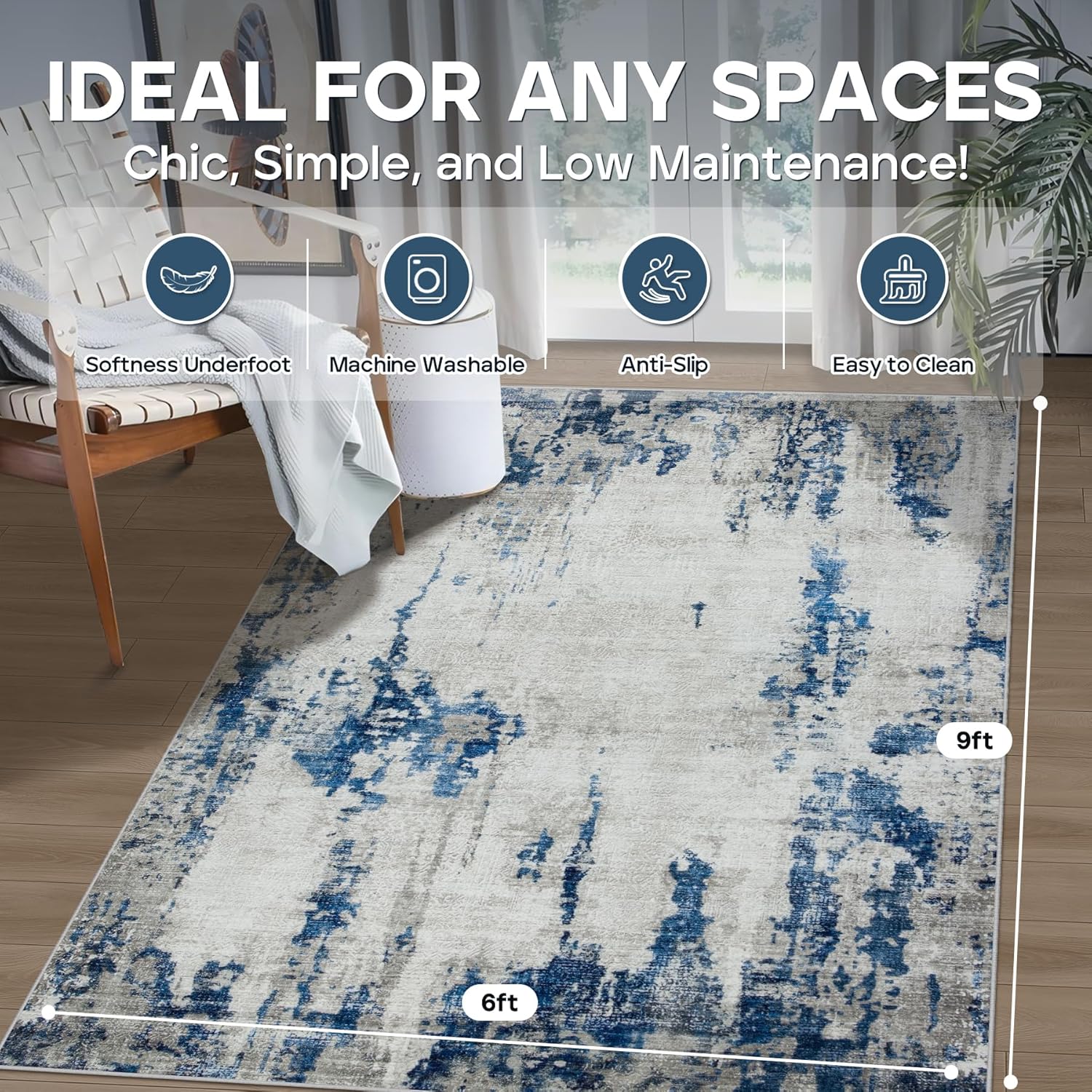 - Easy Maintenance: Keep your space fresh and clean with minimal effort. Our modern 6x9 area rugs are machine washable, spot-cleanable, and vacuum-friendly, making maintenance a breeze. Use a low-power vacuum regularly to remove dust or pet hair for everyday care. Avoid using bleach for best results