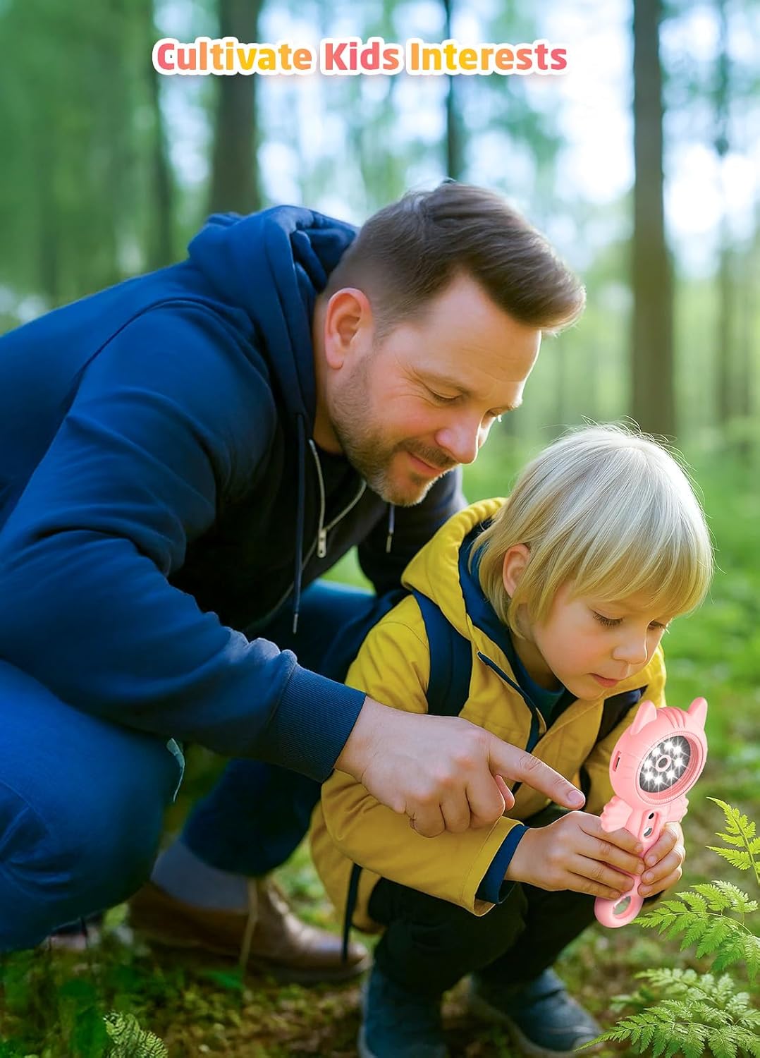 - 2-in-1 Children's Microscope Camera: The microscope lens has a magnification of 500x and a zoom function of 16x, which can automatically focus and support multi angle observation of objects. You can take detailed pictures of objects in microscope mode. The 8 LED auxiliary light sources around it can make the field of view clearer and brighter. The camera lens can capture 2-megapixel photos and 1080P videos (with the included 32GB card, you can store enough content)