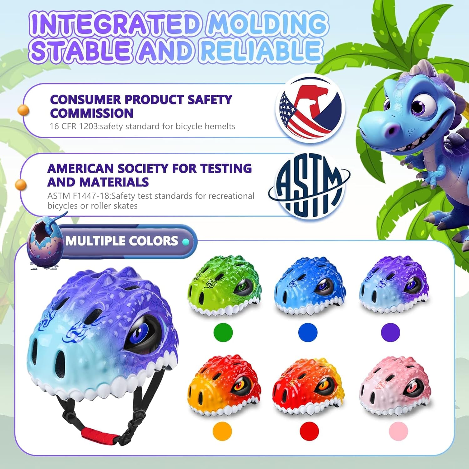Toddler/Kids Bike Helmet Set for Boys Girls 3D Adjustable Kids Helmet Protective Gear Set Knee Elbow Wrist Pads and Multi-Sports Skateboard Scooter Cycling Roller Balance Bike
