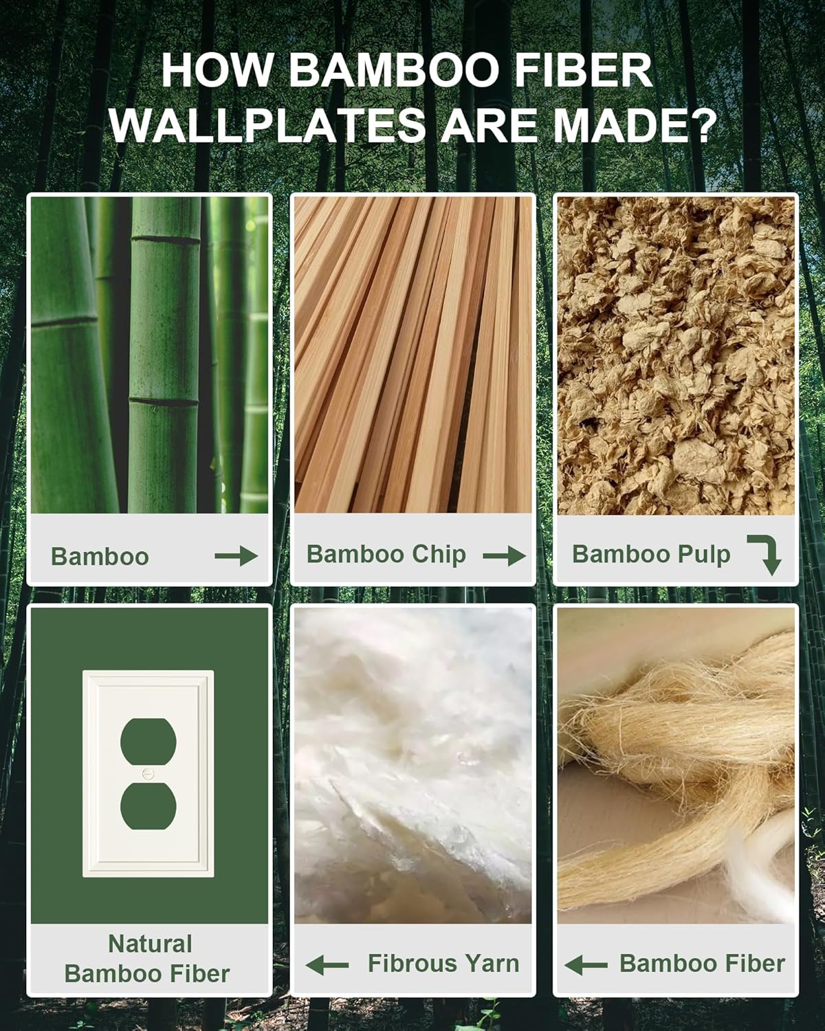 6-Pack Duplex Outlet Cover, Natural Bamboo Fiber Switch Plates and Outlet Covers, Light Almond Decorative Wall Plates for Electrical Outlets, 1 Gang Receptacle Cover, Corrosion Resistant