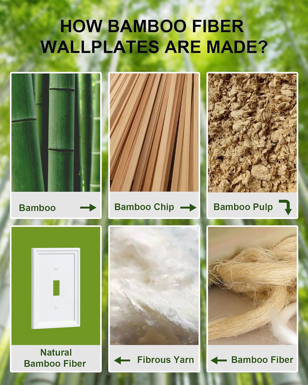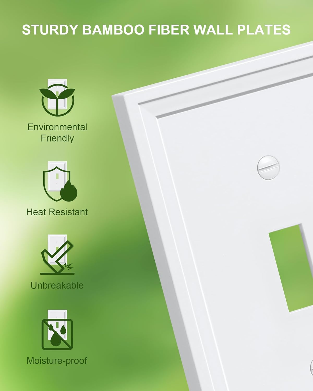 6-Pack Single Toggle Light Switch Covers Wall Plate, Pure White Decorative Switch Plate Covers, 1 Gang Natural Bamboo Fiber Wall Plate, Corrosion Resistant