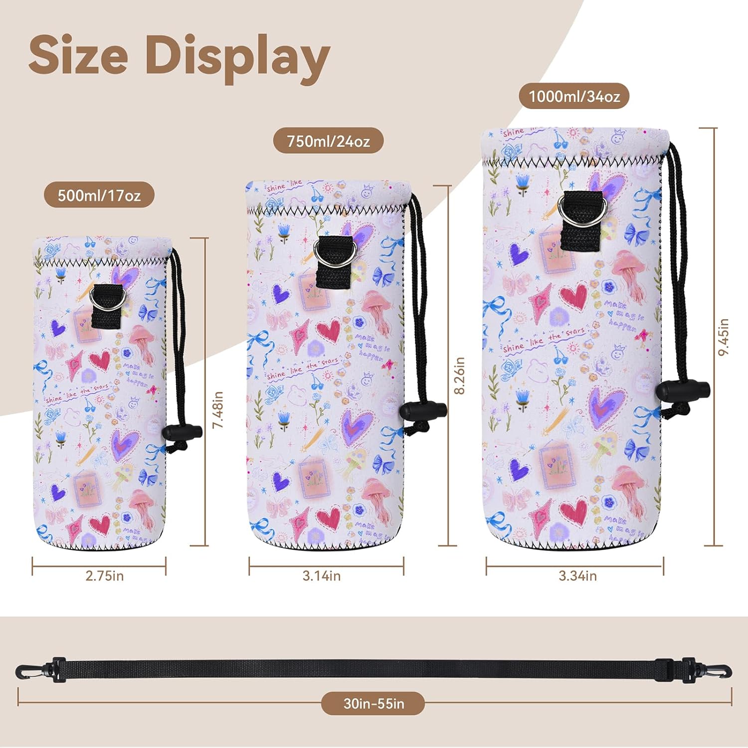• AVAILABLE IN TWO SIZES:Our AUPET water bottle Holders has two sizes for you to choose,750ML:length: 8.26 inches,Diameter: 3.14 inches;1000ML: length: 9.45 inches,Diameter: 3.35 inches,the neoprene stretches to fit most bottles