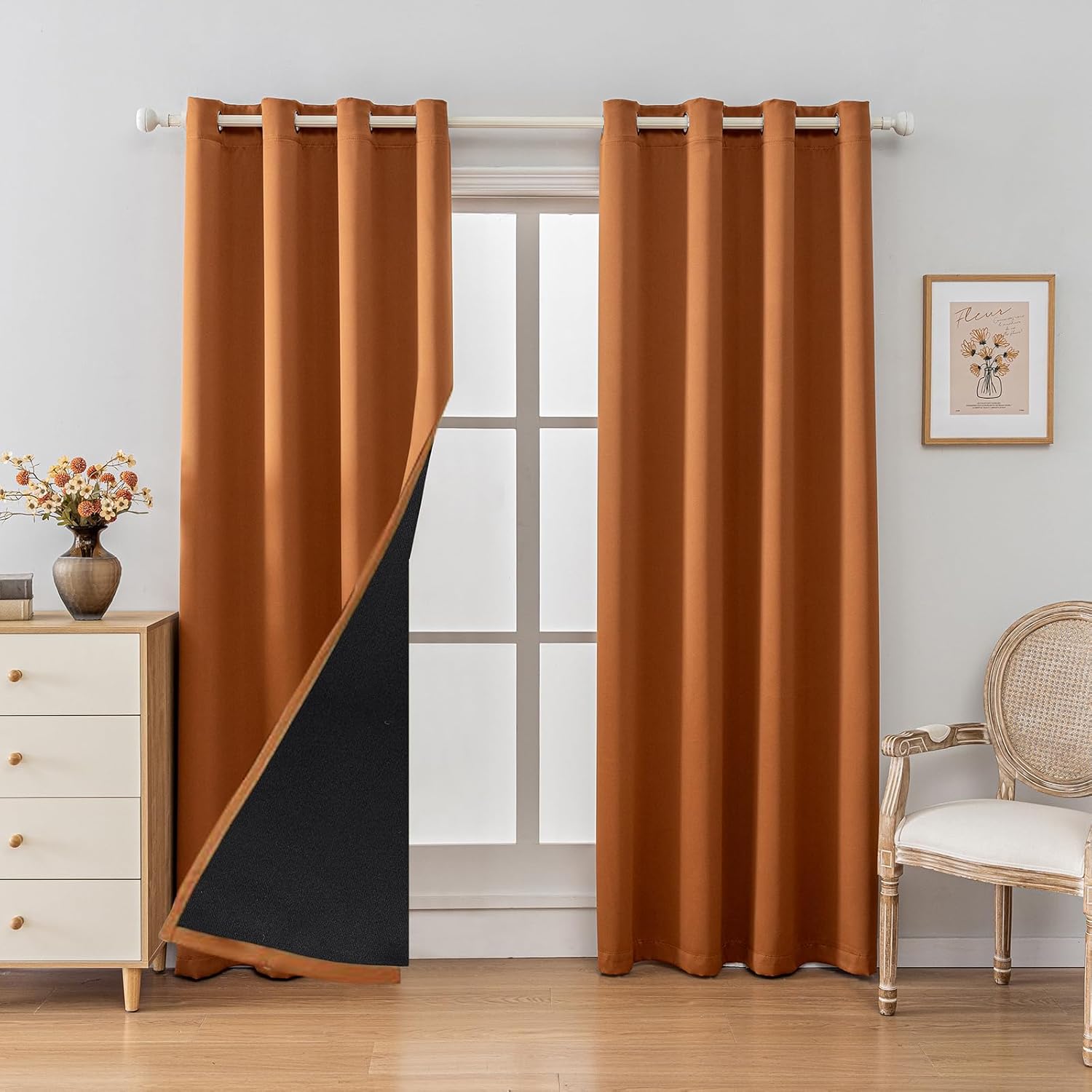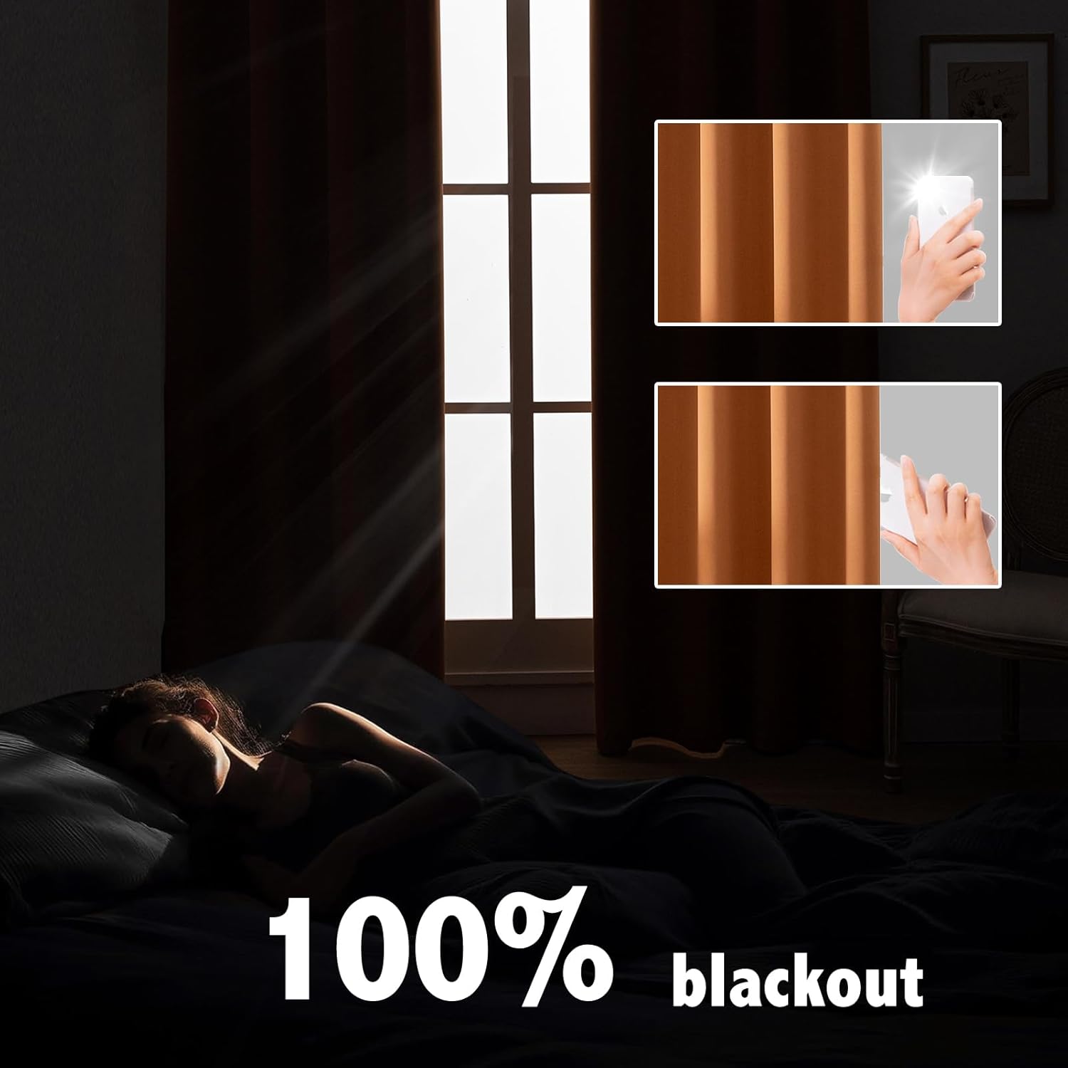 Anytime 100% Blackout Curtain Set, Thermal Insulated & Energy Efficiency Window Draperies for Guest Room, Full Shading Panels for Shift Worker and Light Sleepers(Orange, 2 Panels, 52W x 95L)