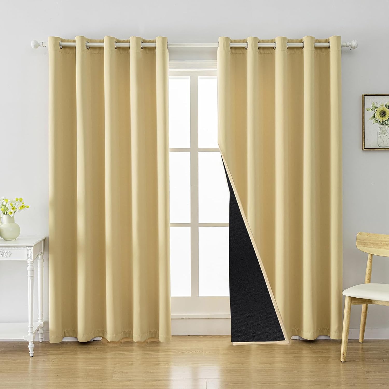 Anytime 100% Blackout Curtain Set, Thermal Insulated & Energy Efficiency Window Draperies for Guest Room, Full Shading Panels for Shift Worker and Light Sleepers(Beige, 2 Panels, 70W x 108L)