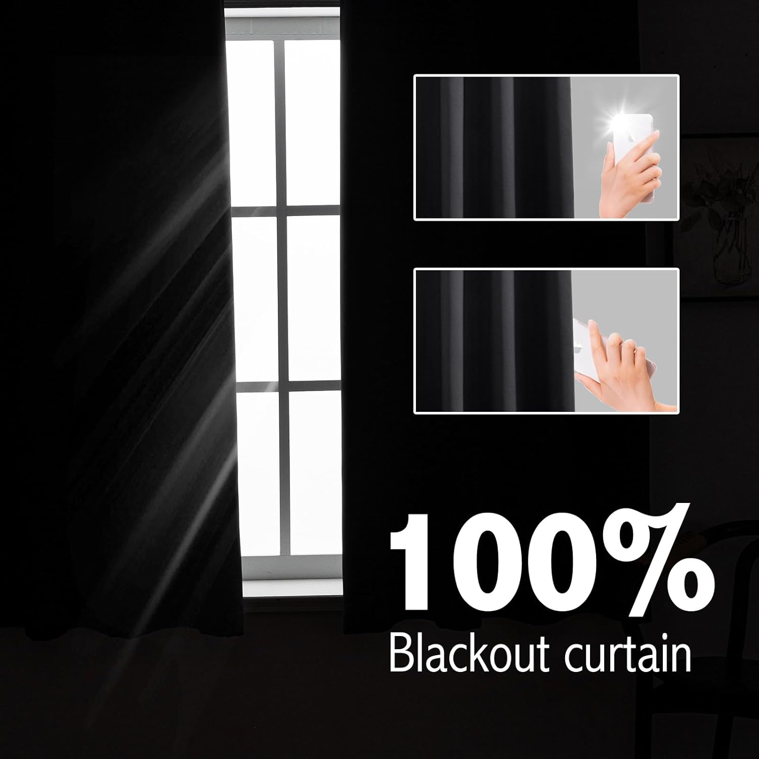 Anytime 100% Blackout Curtain Set, Thermal Insulated & Energy Efficiency Window Draperies for Guest Room, Full Shading Panels for Shift Worker and Light Sleepers(Black, 2 Panels, 52W x 45L)