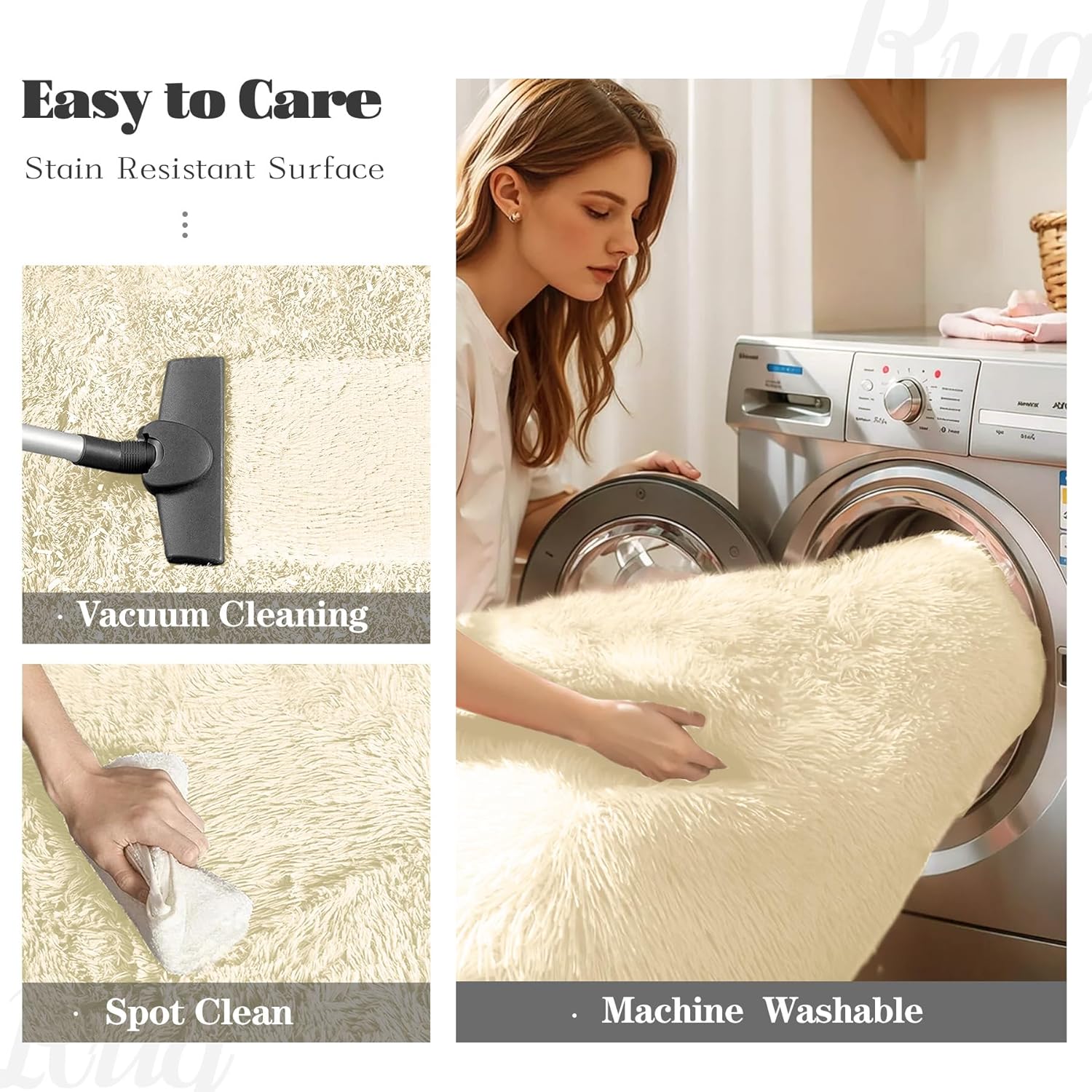 8x10 Area Rug for Living Room: Fluffy Shag Soft Washable Rugs Large Fuzzy Plush Indoor Carpet for Bedroom Nursery Playroom Kids Girls Boys Room (Cream White, 8'x10')