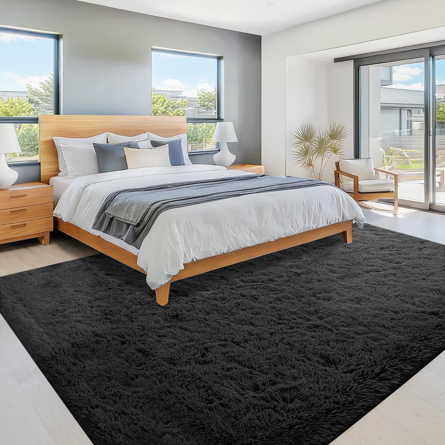 6x9 Area Rug for Living Room: Fluffy Shag Soft Washable Rugs Large Fuzzy Plush Indoor Carpet for Bedroom Nursery Playroom Kids Girls Boys Room (Black, 6'x9')