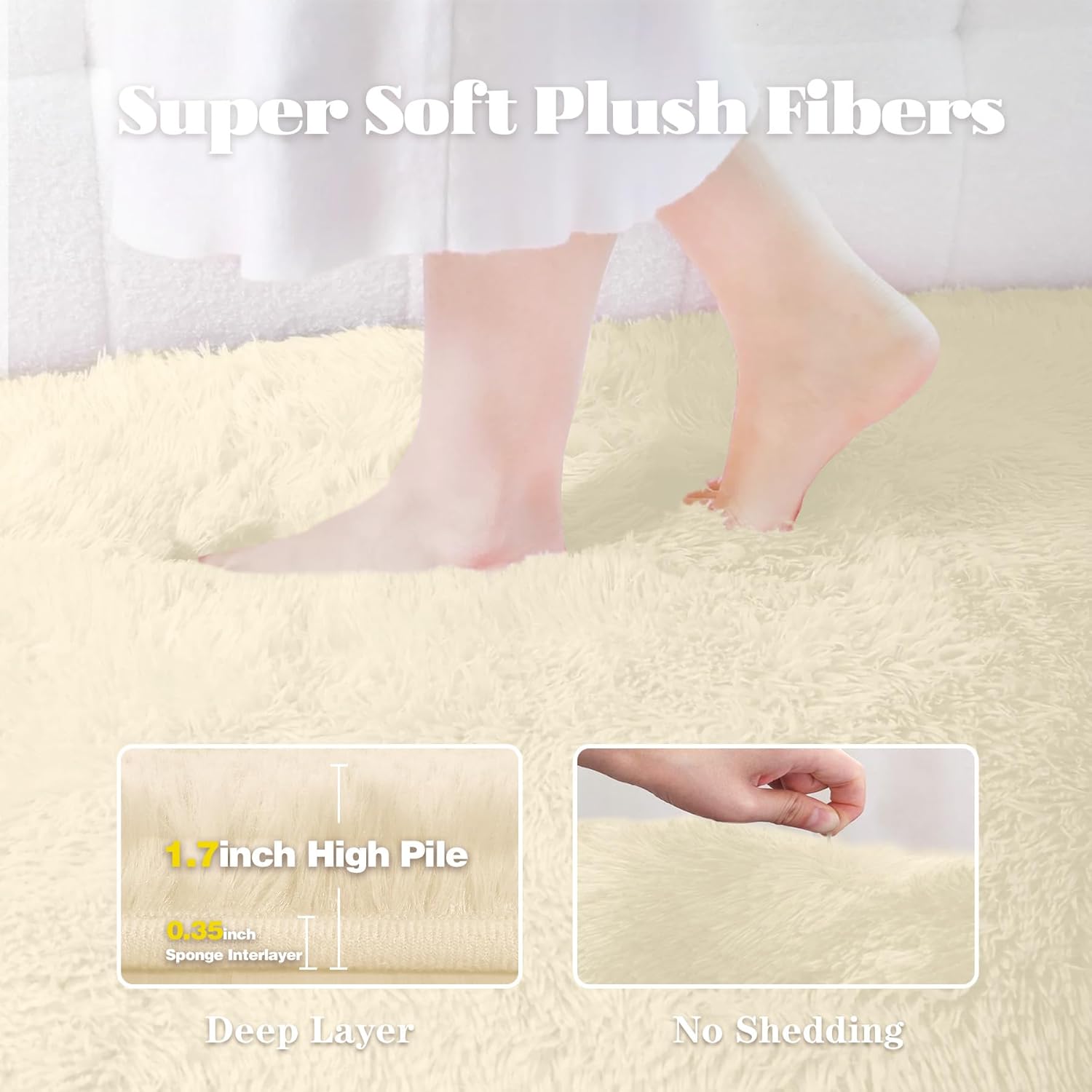 5x8 Area Rug for Living Room: Fluffy Shag Soft Washable Rugs Fuzzy Plush Indoor Carpet for Bedroom Nursery Playroom Dorm Kids Girls Boys Room (Cream White, 5'x8')