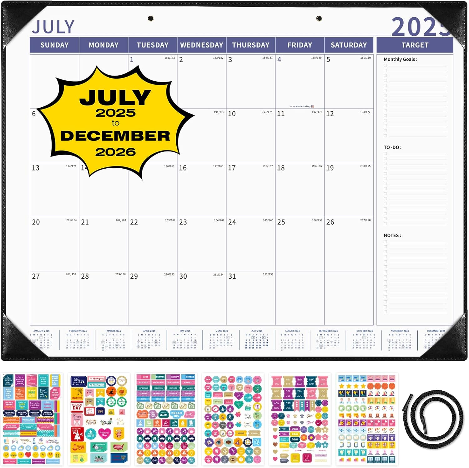 Ospelelf Large Desk Calendar 2025-2026 with PU Leather Pad, 18 Months Planner Pad from July 2025 to Dec 2026, 22" x 17" Wall Calendar with Protective Cover for Home or Office, Black