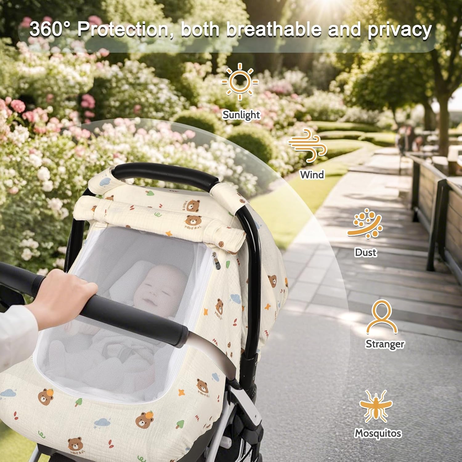 - 3 Versatile Modes for Every Need: Switch effortlessly between mesh window mode (UV protection & visibility), fully enclosed mode (windproof & private), and open-air mode (max breathable)–a must-have baby car seat cover for travel gear