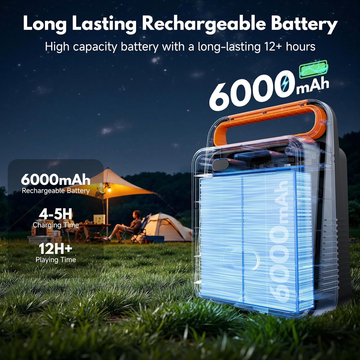 - Extended Playtime: With its powerful 5500mAh battery, the karaoke speaker up to 12 hours of uninterrupted entertainment on a single charge. Plus, it recharges fully in just 5 hours, keeping the music going for longer without any interruptions, you'll be able to take full control of your party.