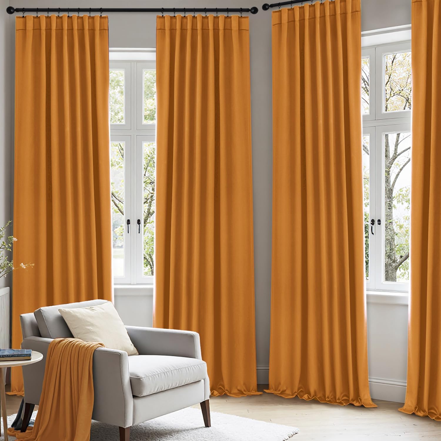 ANRODUO Back Tab Blackout Curtains for Bedroom Living Room, Rod Pocket Pinch Pleated Thermal Insulated Room Darkening Curtains 63 Inches Long 2 Panels, Mustard Yellow, 42 x 63 Inch