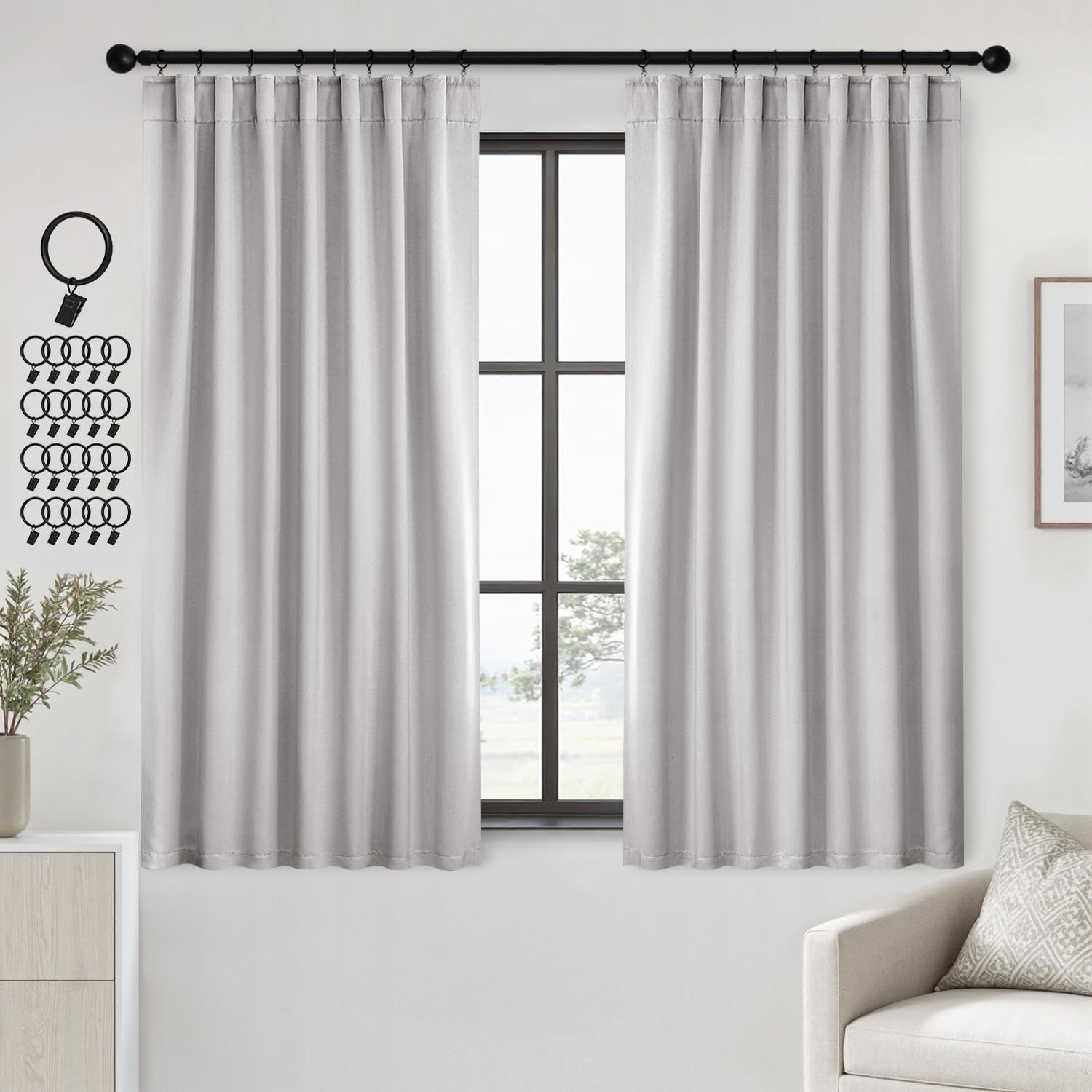 - MULTIPLE HANGING OPTIONS:Each curtain panel has 3-in-1 top style design: Rod Pocket, Back Tab and Pinch Pleat.We will include 20 pin hooks and clips for each pair of curtains (rings included)