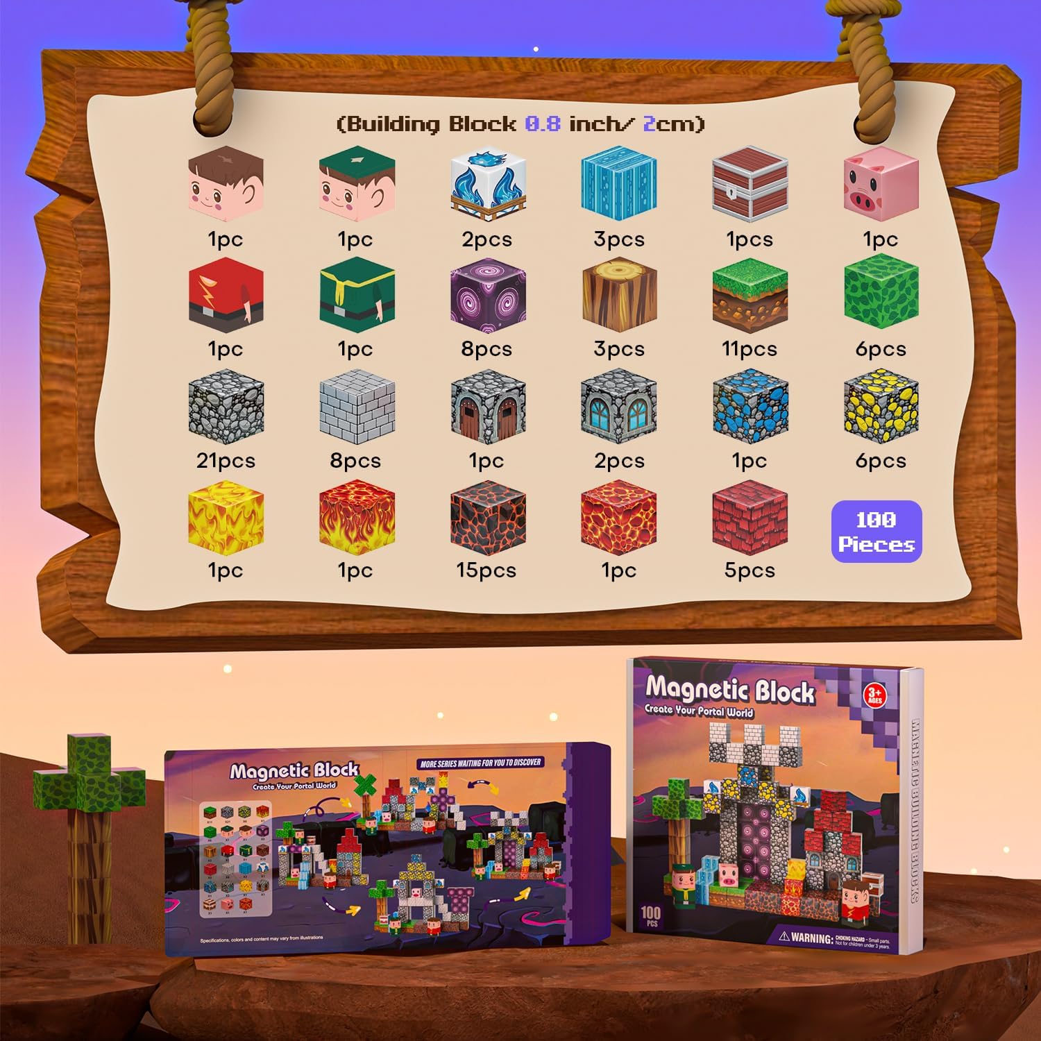 - Portal-Themed Adventures Set: Let's start on an adventure with Kryzomat magnetic building blocks! Spark the imagination of kids with themes of portal, lava and forest, each block features a wide range of captivating and imaginative patterns. Boys and girls can follow the instructions to build vibrant forest and lava river, or use their imagination to create their own magic adventure world for hours of enjoyment