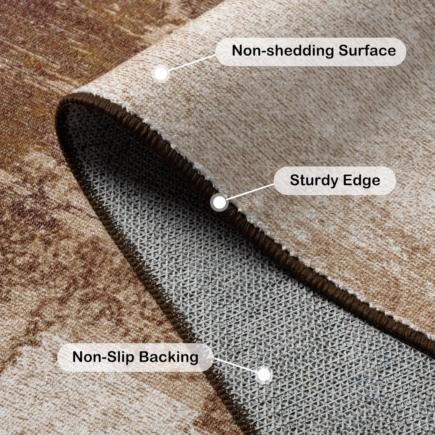 Kelarea Living Room Rug, 9x12 Rug Modern Abstract Washable Rugs, Brown Vintage Low Pile Carpet, Non Slip Large Rugs for Bedroom, Dining Room, College Dorm, Home Office