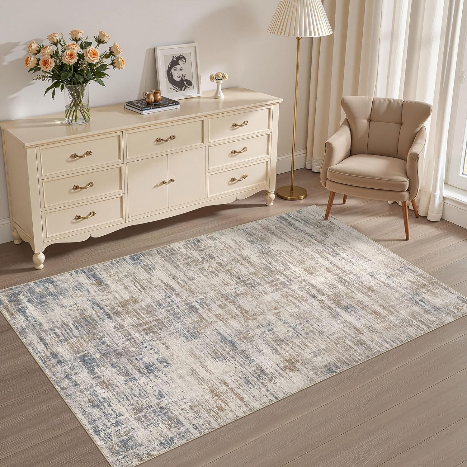 Area Rug for Living Room: 3x5 Washable Neutral Abstract Modern Soft Rugs Non Slip Indoor Floor Stain Resistant Carpet for Bedroom Dining Room Office Nursery - Brown