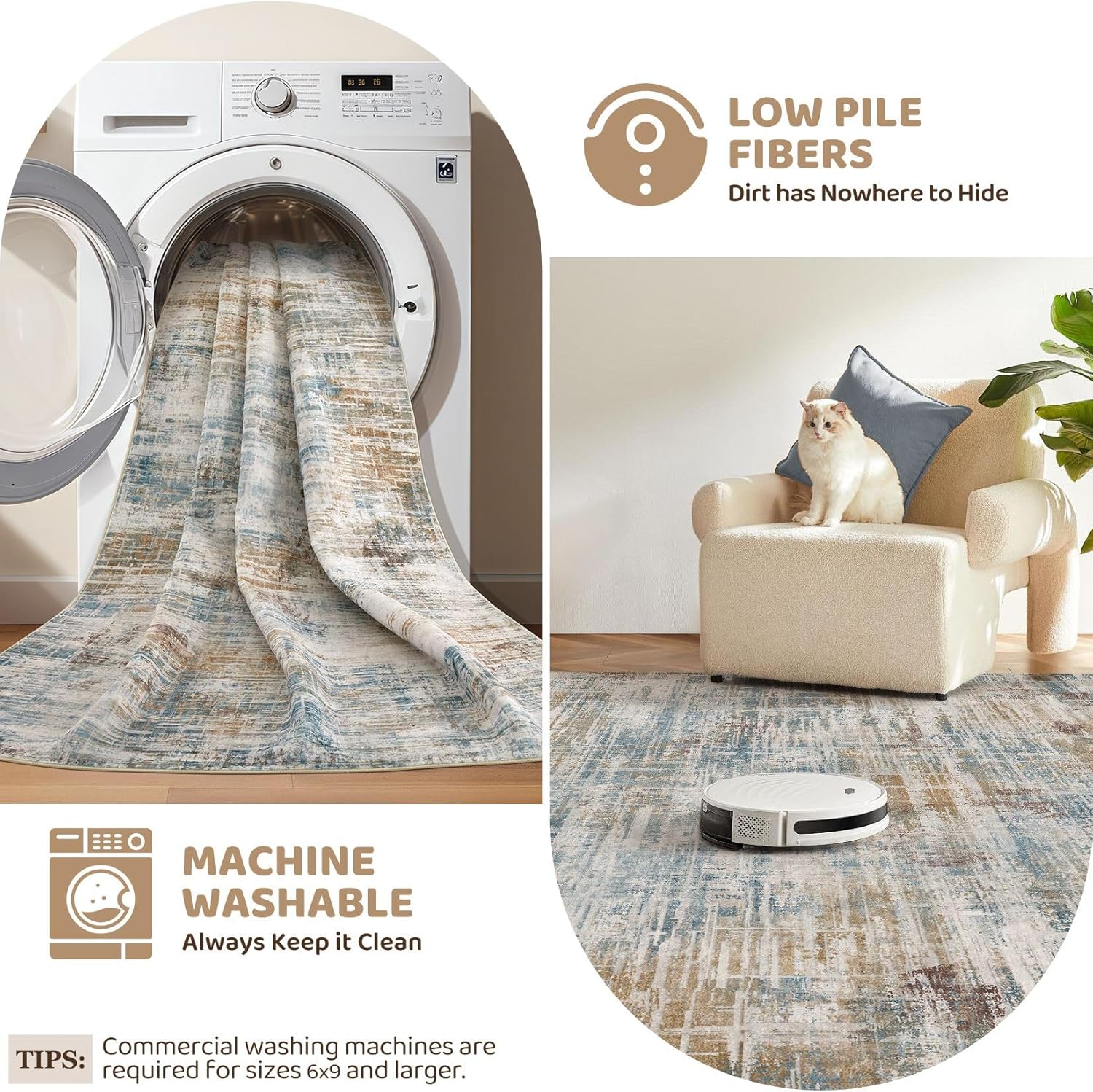 - Washable & Easy Care: Say goodbye to stains and spills! Our living room rug is machine washable, easy to maintain. Minor stains wipe off easily use robot or vacuum. Stain-resistant, lightweight design keeps it new even in busy households