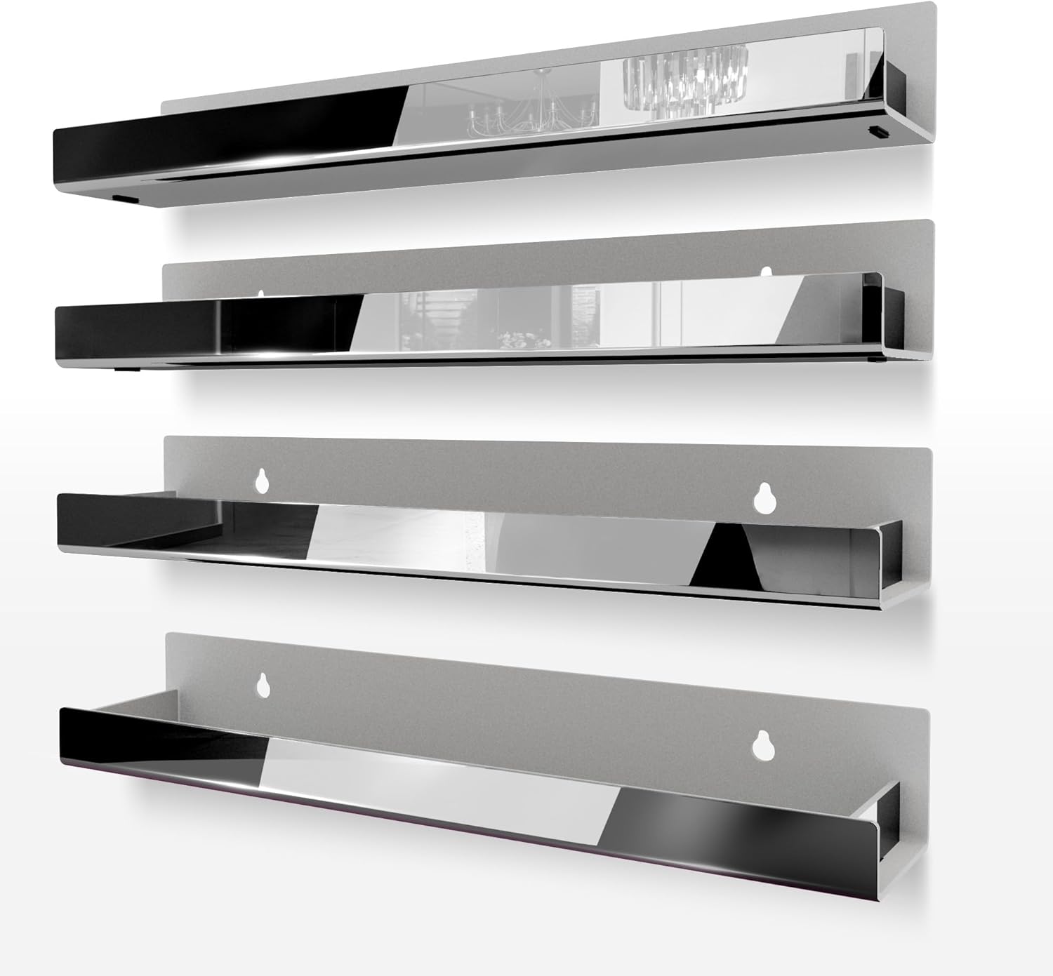 4 Pack 15 Inch Black Reflective Acrylic Shelves, Black Floating Shelves, Modern Sunglasses Essential Oil Picture Ledge Display Toy Storage Shelf