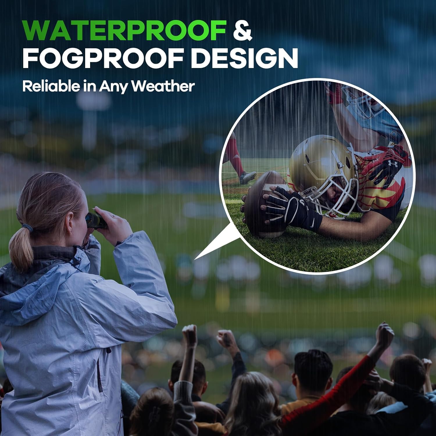 - IPX7 WATERPROOF & FOG-PROOF FOR ALL-WEATHER HUNTING-Built rugged with IPX7 waterproofing and nitrogen-filled lenses. Hunt in rain, kayak through mist, or explore humid jungles—these fog-free binoculars for hunting withstand extreme conditions. Your vision stays clear, storm or shine.