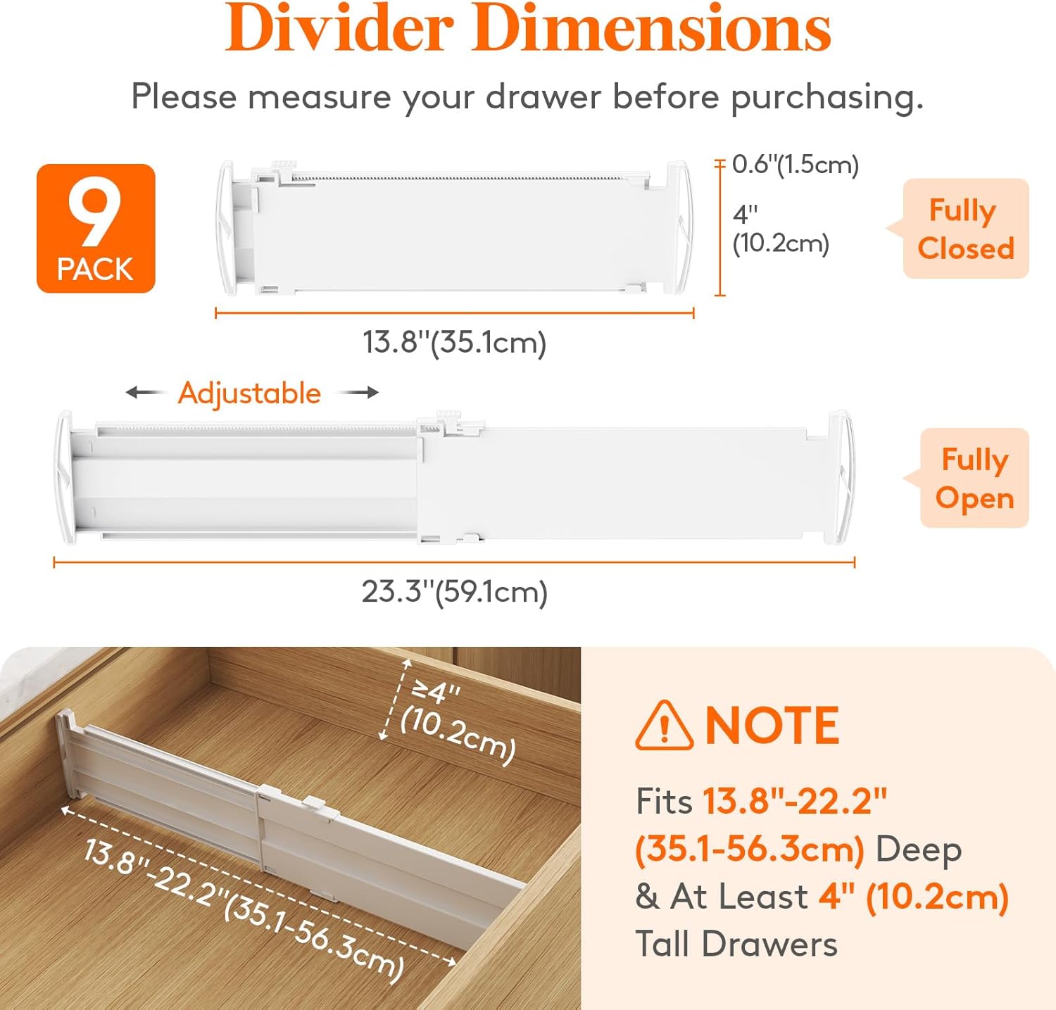 Lifewit 9 Pack Drawer Dividers 4" High, 13.8-22.5" Dresser Drawer Divider, Adjustable Drawer Organizers for Clothes, Plastic Drawers Separators for Dresser, Bedroom, Bathroom, Kitchen, Office