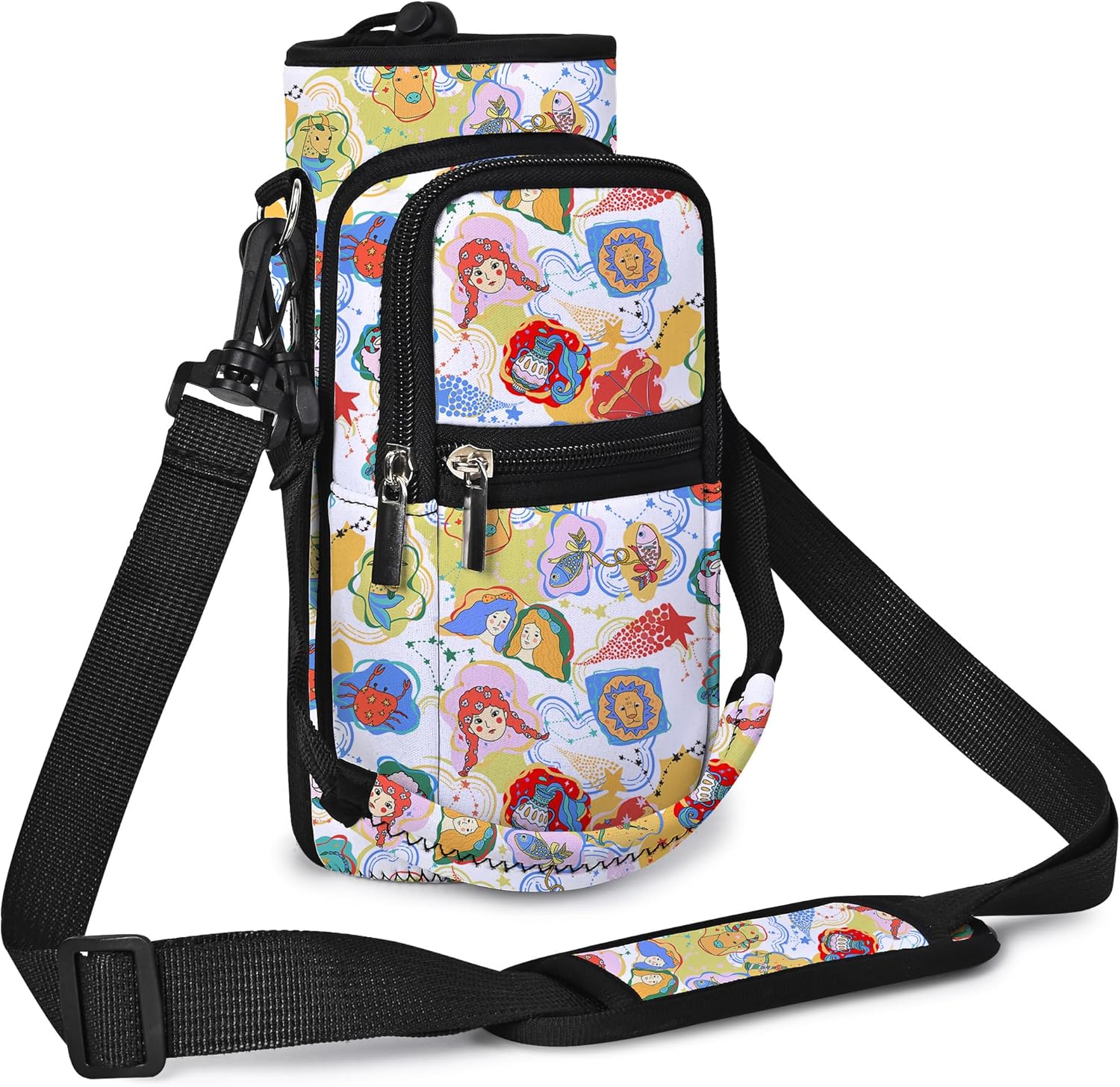 • GREAT FOR TEENS & ADULTS: Both adults and Kids can find great use in this AUPET water bottle carrier holder. Use it for walking,running,gym,cycling,hiking and more.with two zipper pockets for smartphone,cash,card keys and other small items.with the adjustable shoulder strap and the carring strap,it will fits all body types,you can wear over the shoulder, cross chest as a sling bag or just hand carring.<br/>
