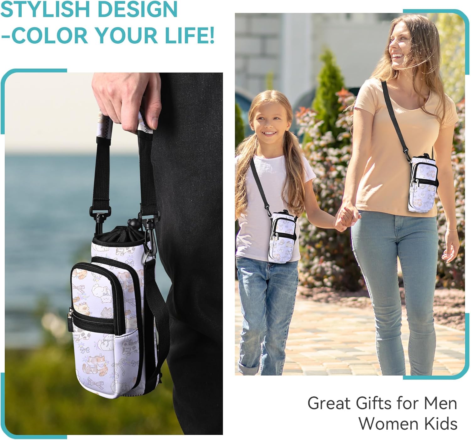• GREAT FOR TEENS & ADULTS: Both adults and Kids can find great use in this AUPET water bottle carrier holder. Use it for walking,running,gym,cycling,hiking and more.with two zipper pockets for smartphone,cash,card keys and other small items.with the adjustable shoulder strap and the carring strap,it will fits all body types,you can wear over the shoulder, cross chest as a sling bag or just hand carring.<br/>