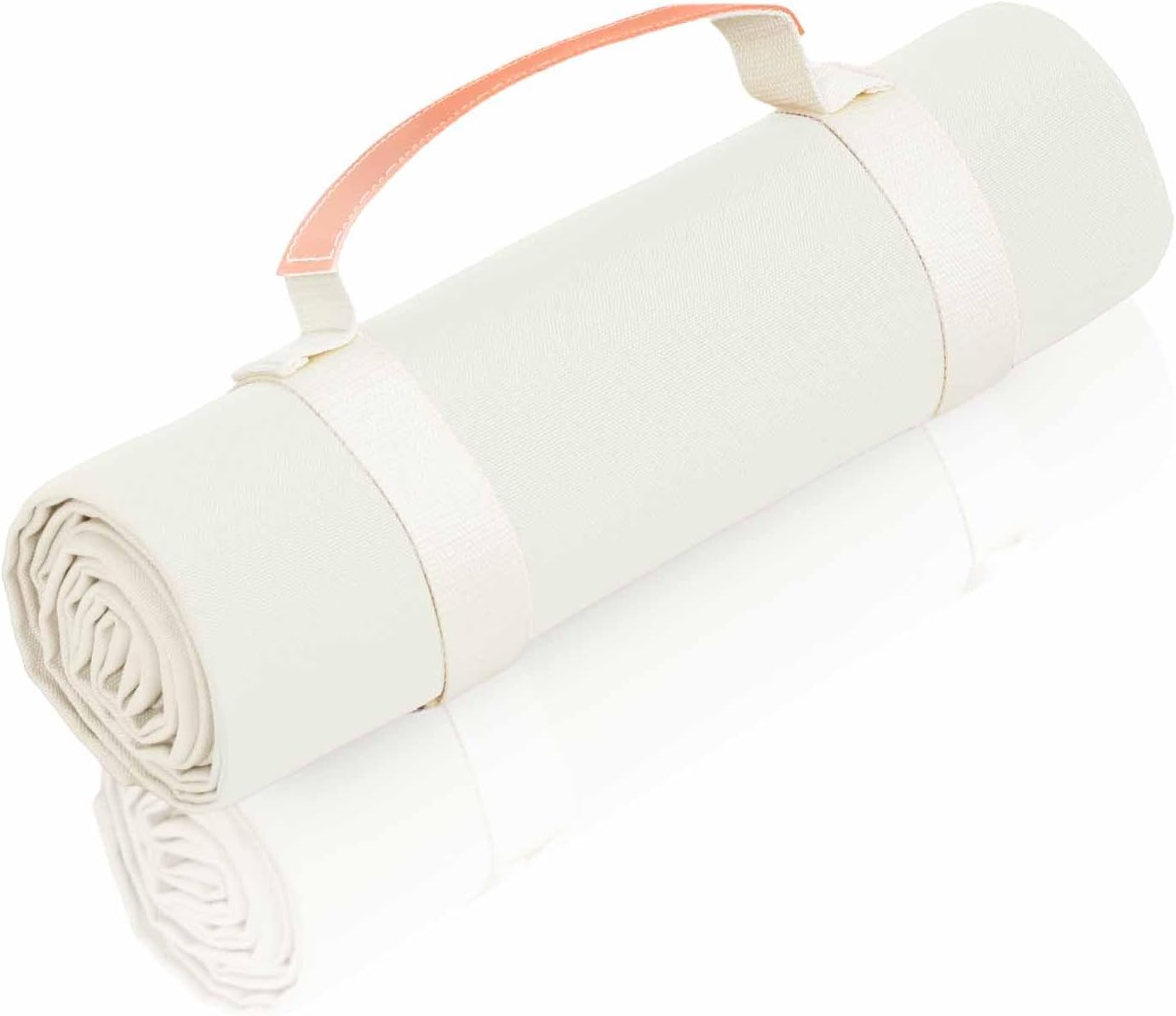 - Includes: 1 white canvas mat, faux leather handle, and webbing strap