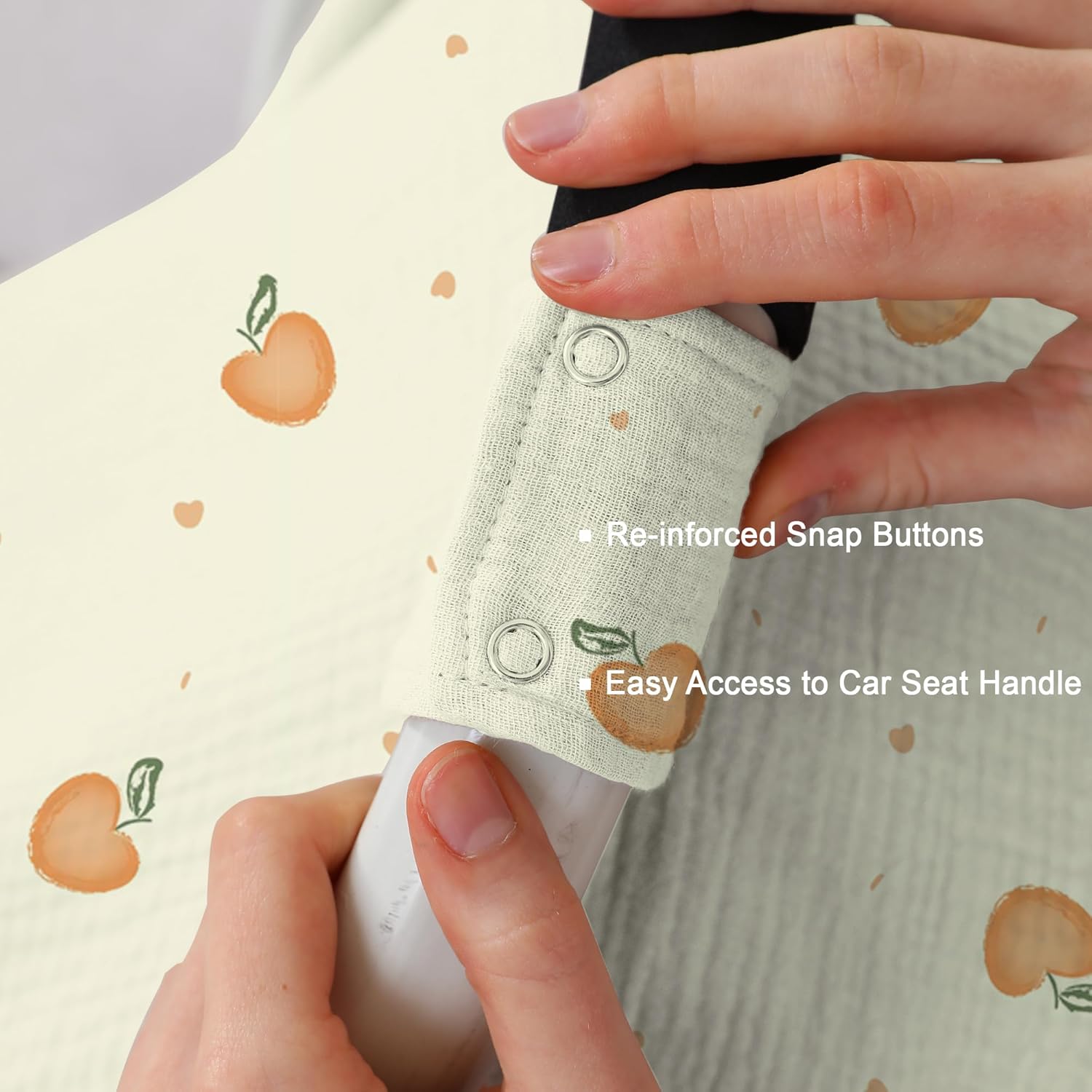 - EASY CARE: We know how busy as a novice mom, so we canceled the Velcro straps and use the snap buttons, mean that it support machine wash! Recommend wash at low temperature.(Do not tumble dry, do not Iron, high temperature will let muslin cotton be hard and shrink.)
