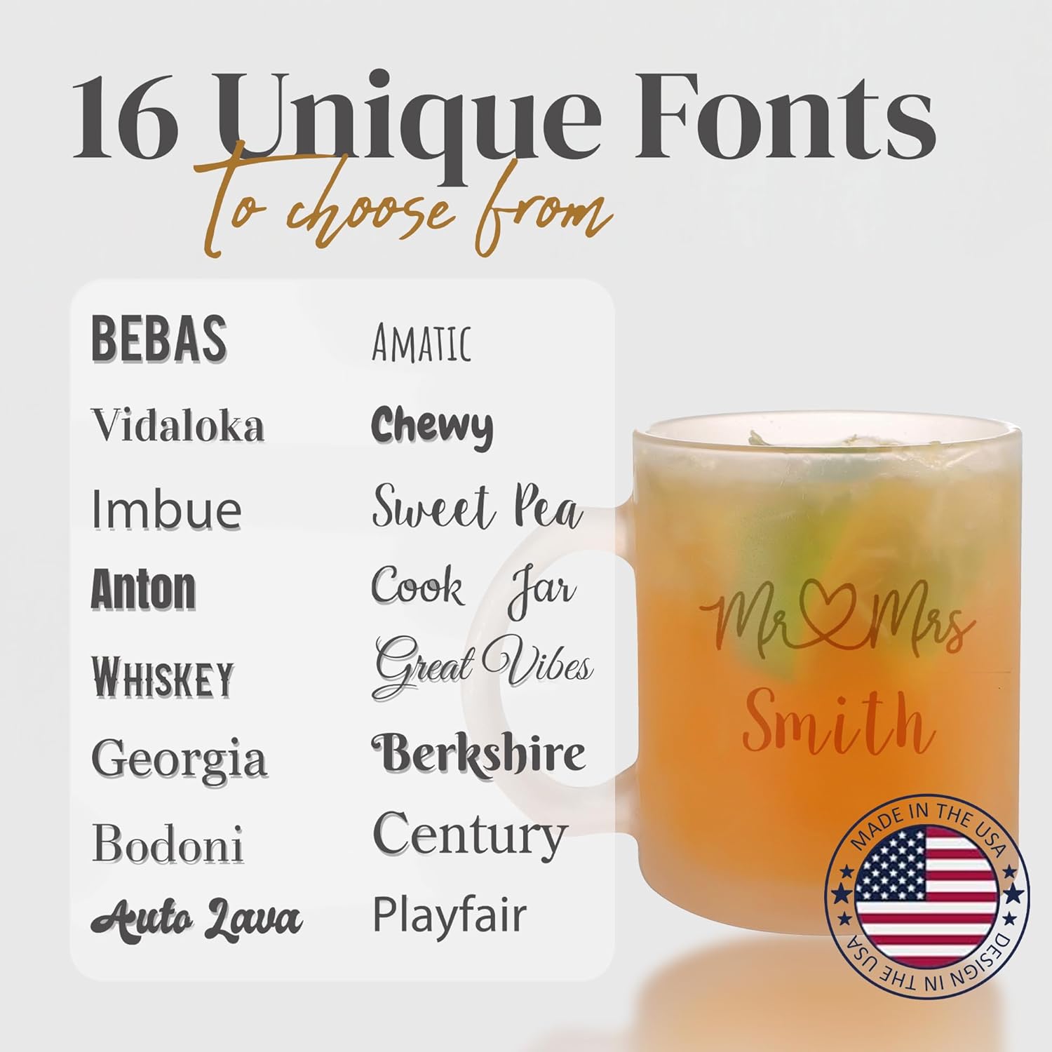 Personalized Coffee Mug Engraved with your Custom Text - Customized 11oz Frosted Glass Mugs, Hot Chocolate Mug, Tea Cup, Birthday Gifts, Retirement Gift (Engraved Custom Logo, Frosted)