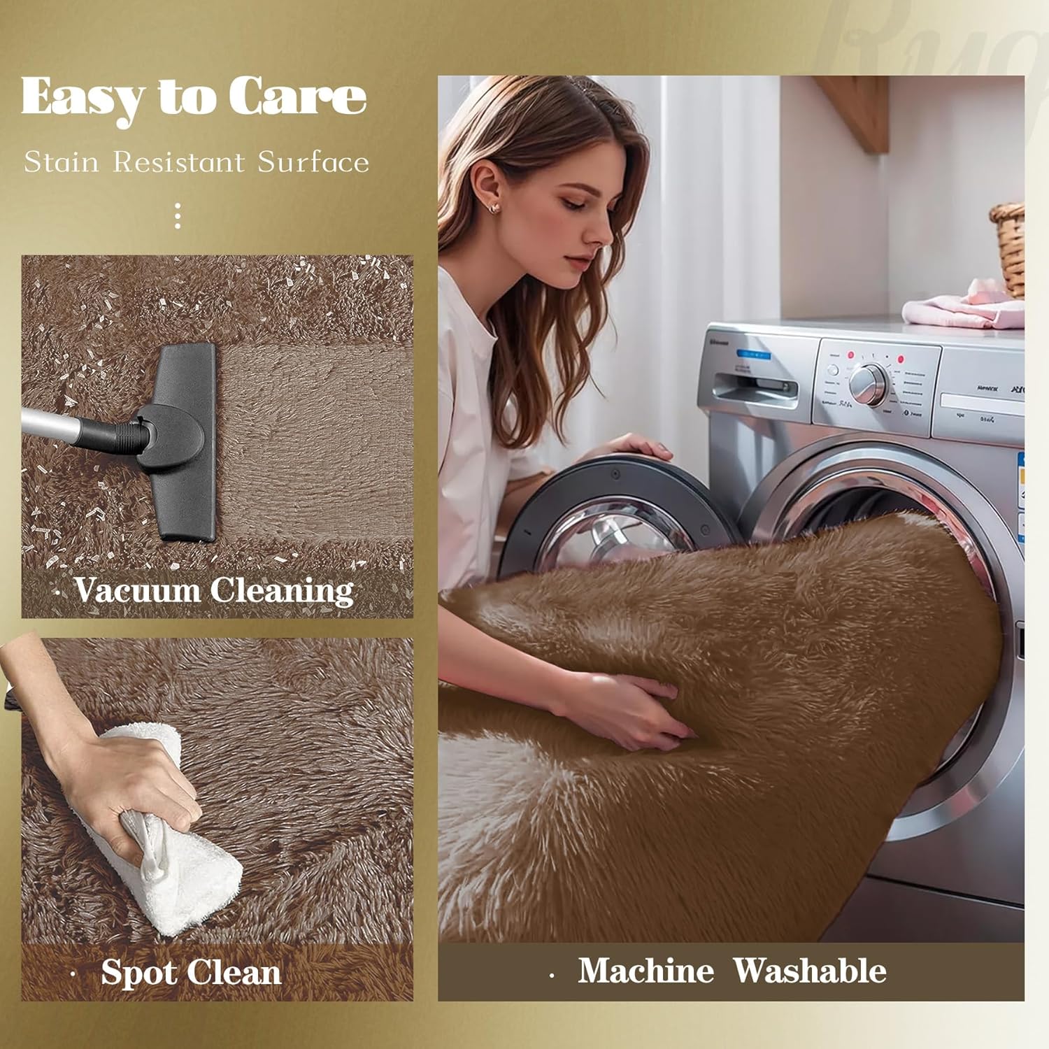 4x6 Area Rug for Living Room: Fluffy Shag Soft Washable Rugs Fuzzy Plush Indoor Carpet for Bedroom Nursery Playroom Dorm Kids Girls Boys Room (Coffee, 4'x6')