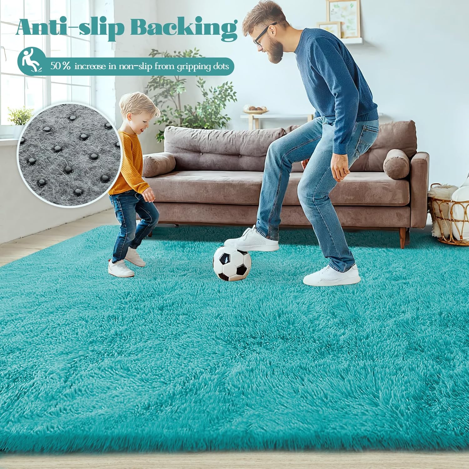 - NON-SLIP BACKING: This fuzzy rug features a TPE anti-slip backing that keeps it firmly in place, even in high-traffic areas. It works well on various floor surfaces, ensuring stability and safety. This plush rug is perfect for homes with children and elderly family members, providing a secure and comfortable surface.