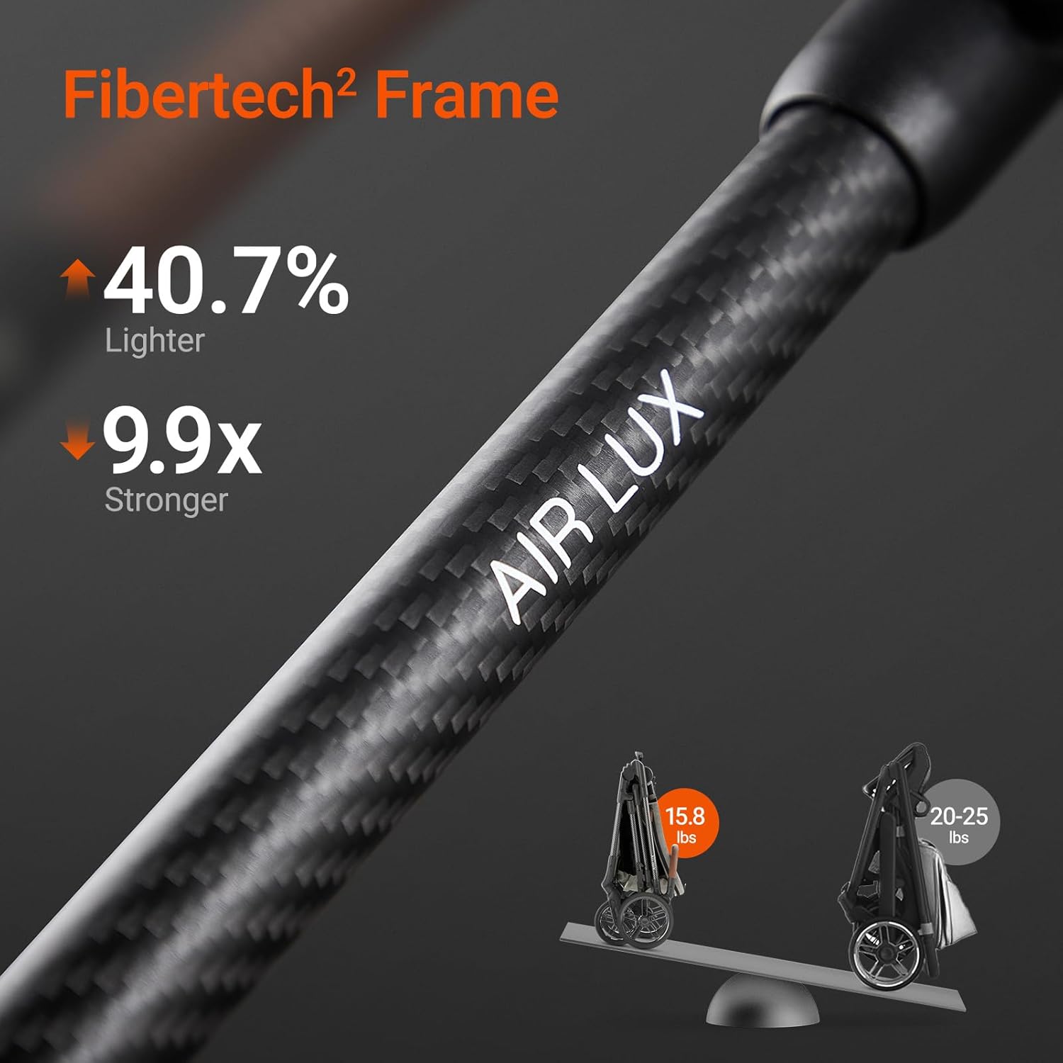 Air Lux Baby Stroller with Carbon Fiber Frame, One-Hand Fold & Reversible Seat, Magnetic 5-Pt Harness, Car Seat Adapter, 15.8lbs, Vetiver