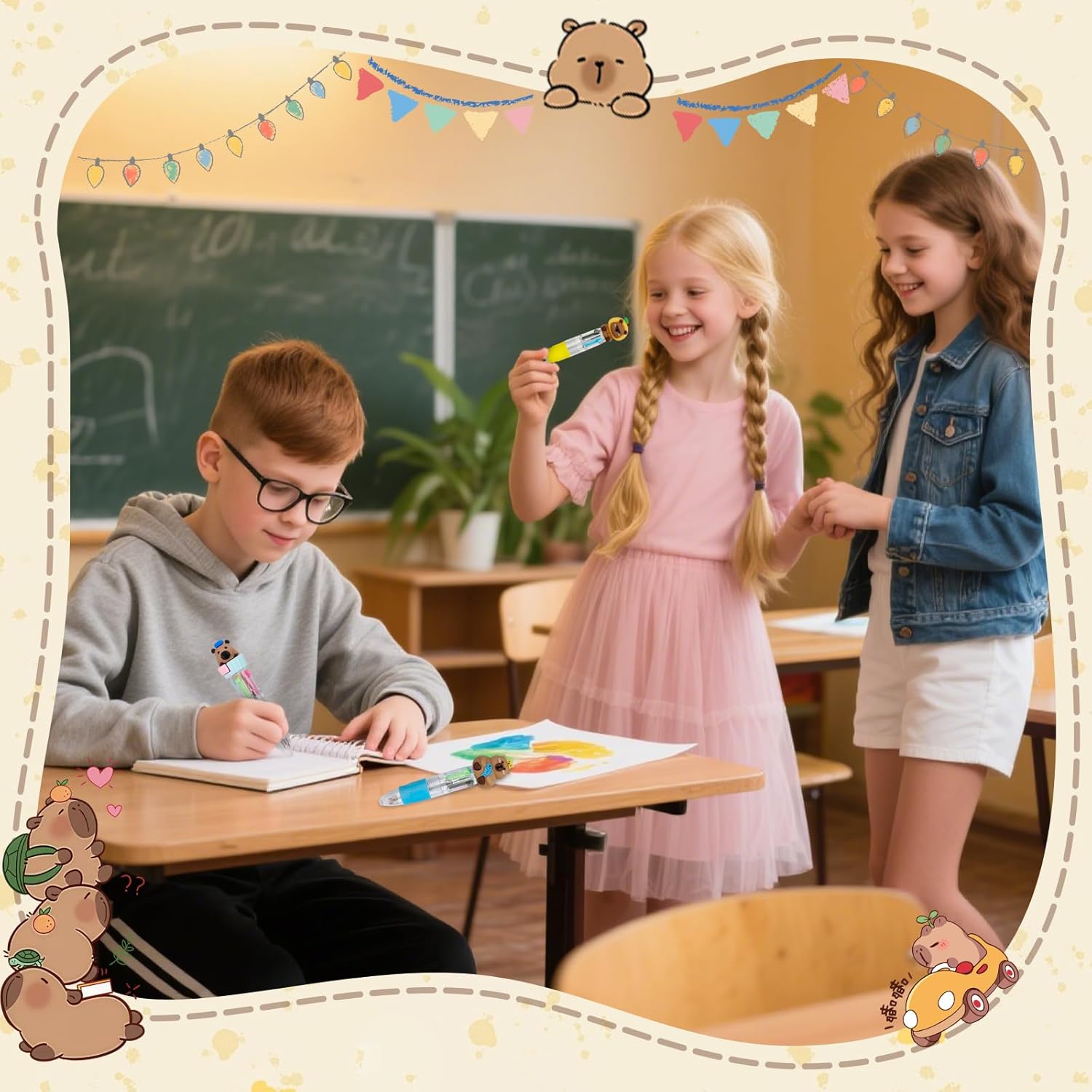 30Pcs Mini Multicolor Pens in One 4-in-1 Cute Pens Bulk for Kids, Ballpoint Pen for Birthdays and Children's Parties, Fun Gifts Assorted Ink Kawaii Pen(Capybara)