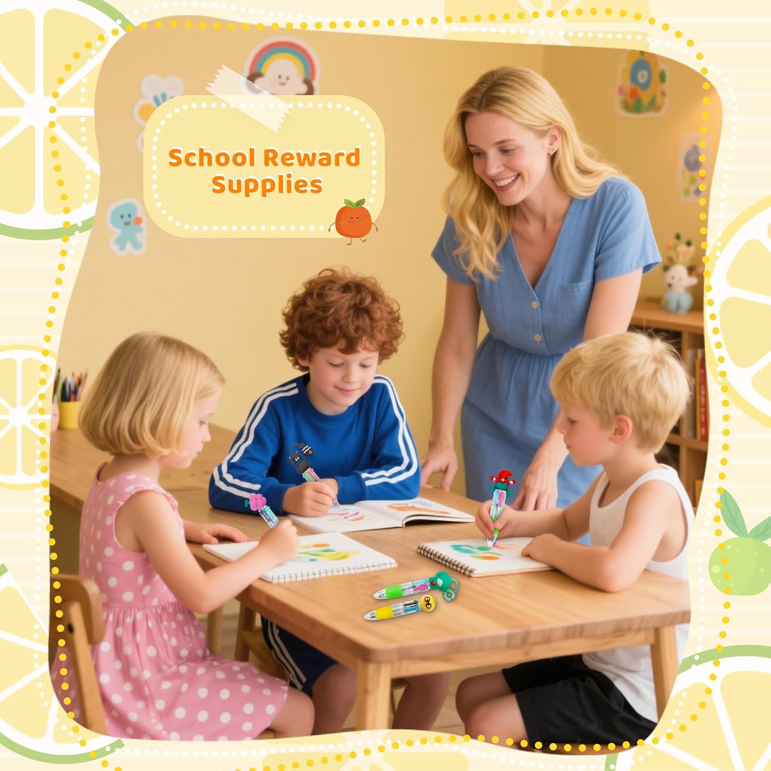 30Pcs Mini Multicolor Pens in One 4-in-1 Cute Pens Bulk for Kids, Ballpoint Pen for Birthdays and Children's Parties, Fun Gifts Assorted Ink Kawaii Pen(Fruits and Animals)