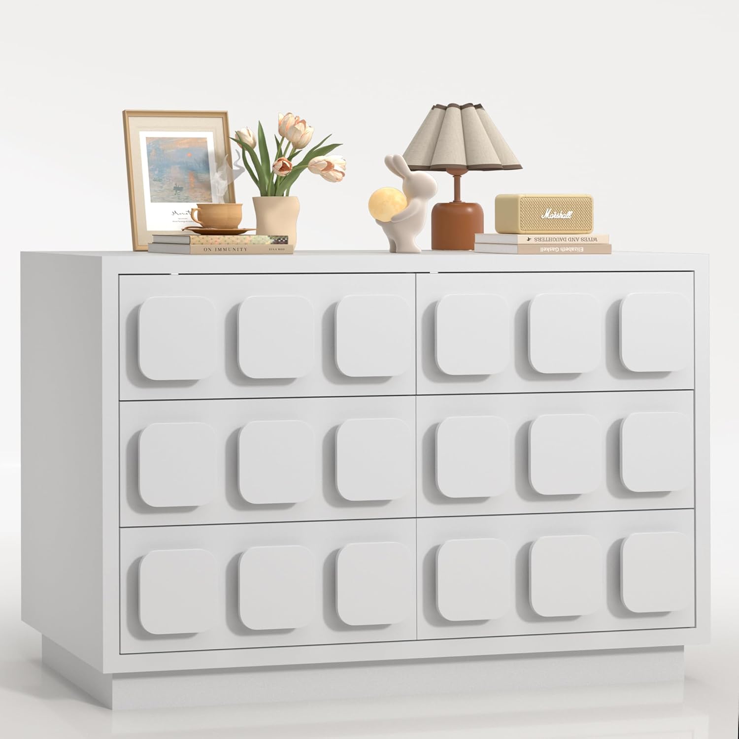 - Elegant and Spacious Design - This Anbuy white dresser features a unique design inspired by chocolate blocks, offering a modern and stylish addition to your bedroom or living room. Its wide and large structure provides ample storage space while enhancing your room's aesthetic appeal.