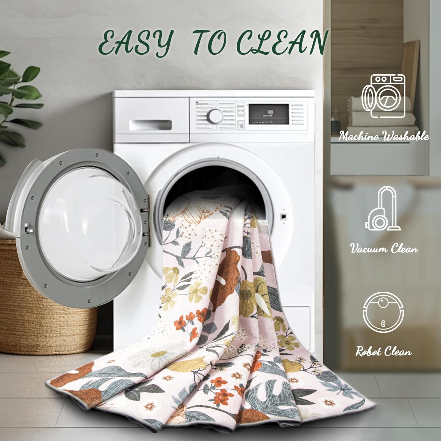- Machine Washable Area Rugs: Bedroom rugs are stain-resistant on the surface and can be cleaned up with a low powered vacuum cleaner for everyday dust, while stubborn stains can be wiped up with a damp cloth. Vintage printed washable rug can also be thrown straight into the washing machine to save hassle and keep your rug looking new