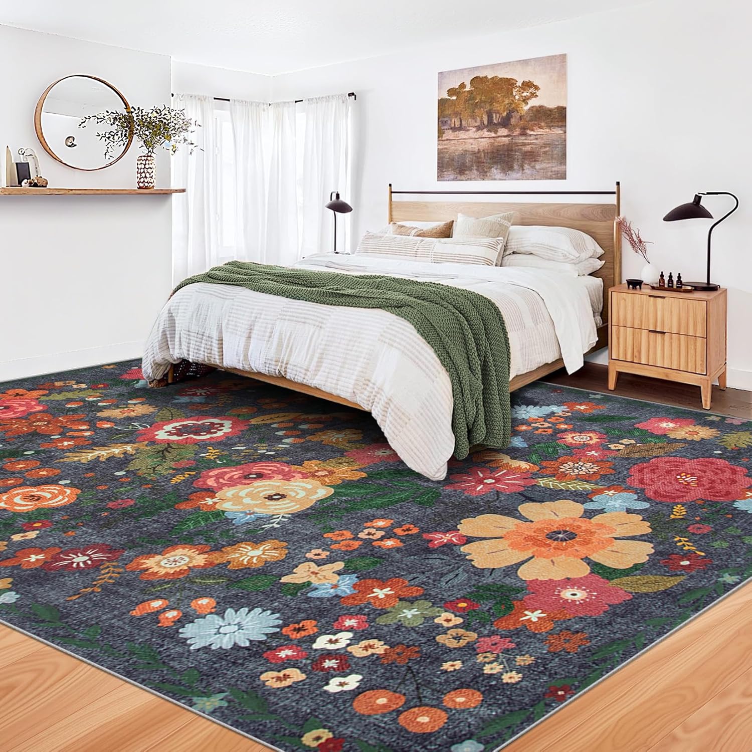 - Machine Washable Area Rugs: Bedroom rugs are stain-resistant on the surface and can be cleaned up with a low powered vacuum cleaner for everyday dust, while stubborn stains can be wiped up with a damp cloth. Vintage printed washable rug can also be thrown straight into the washing machine to save hassle and keep your rug looking new