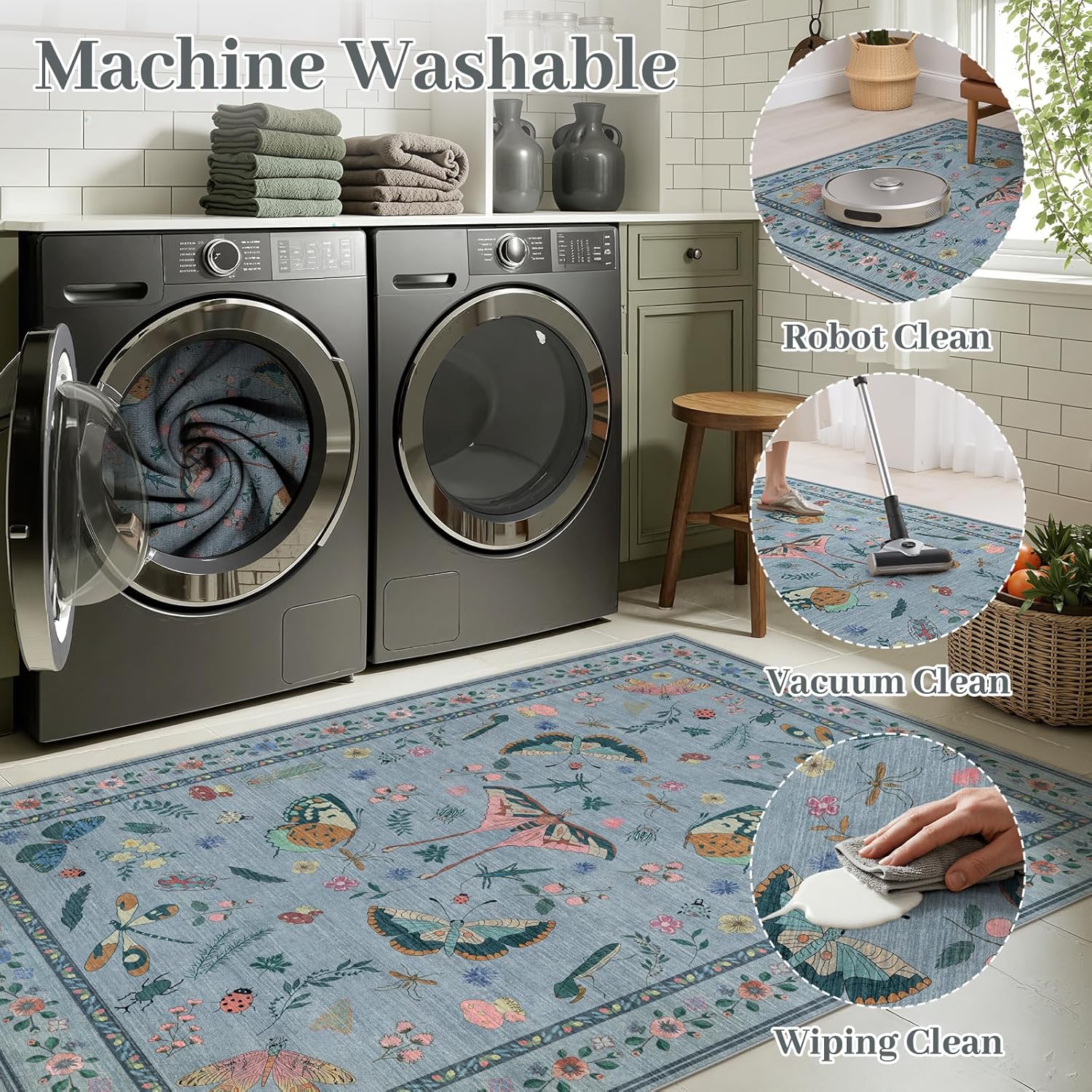 - Machine Washable & Stain Resistant: Our Washable Rugs 5x7 resists stains and shedding. Wipe away spills, pet accidents, baby messes instantly, or toss the entire Rug in the washing machine for deep cleaning. Ideal for high-traffic areas like dining room